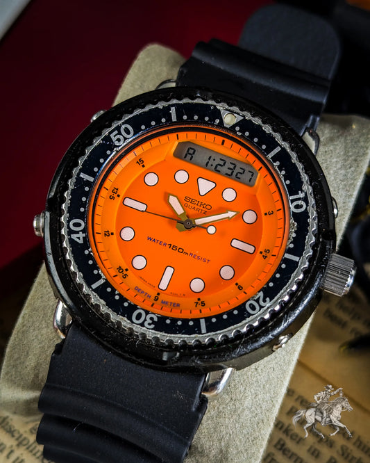 Vendor:Arnie Orange Watch - AnaDigi Display - Rotating Bezel - 1982 JDMRegular price $1,325.00 AUDRegular priceUnit price / per$1,525.00 AUDSale price $1,325.00 AUDSale