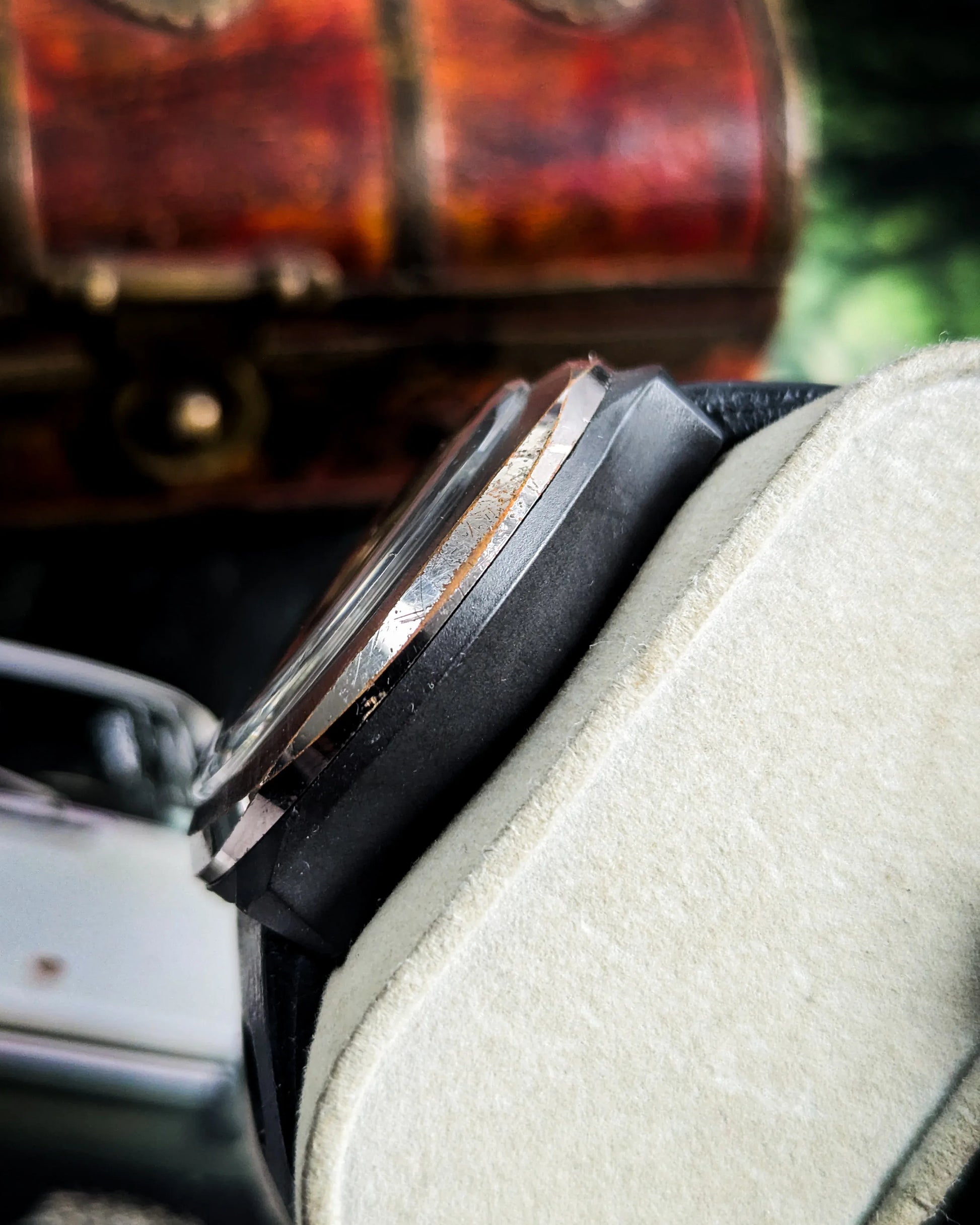 A unique and undervalued artifact from the great Jack Heuer era! The Heuer Temporada, reference 733.809- was Heuer's answer to creating an affordable yet high-quality chronograph during the early 1970s. It is instantly recognizable by its groundbreaking black composite case (often plastic or fiberglass) paired with a stainless steel bezel and caseback- an early experiment in materials that predates the modern use of carbon and polymer in watches. This makes it a rare technical curiosity!