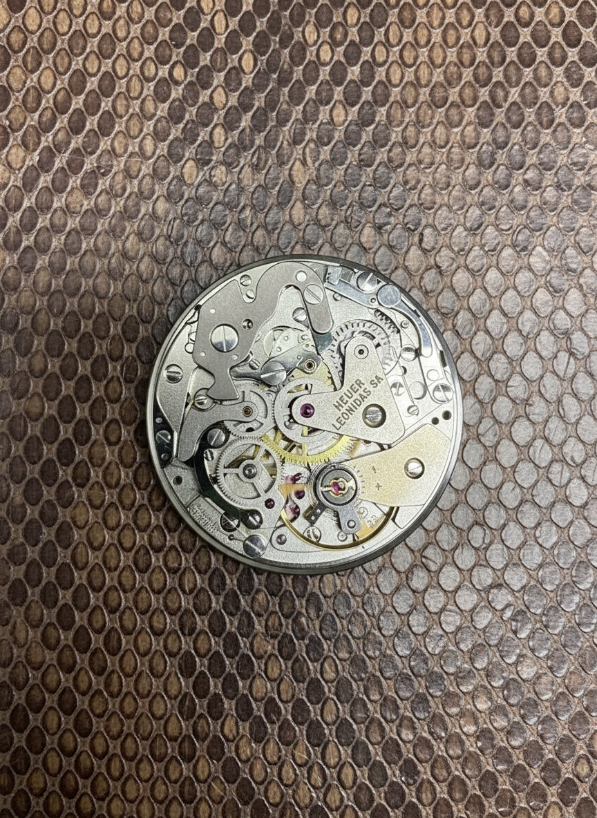 The heart of this watch is the robust Valjoux Caliber 7733, a 17-Jewel manual-wind chronograph movement that powered countless prestigious chronographs of the era. The single-pushers and bi-compax (two-register) layout deliver the pure- unadulterated pleasure of engaging a mechanical stopwatch. This caliber is a reliable workhorse and a staple of vintage collecting.