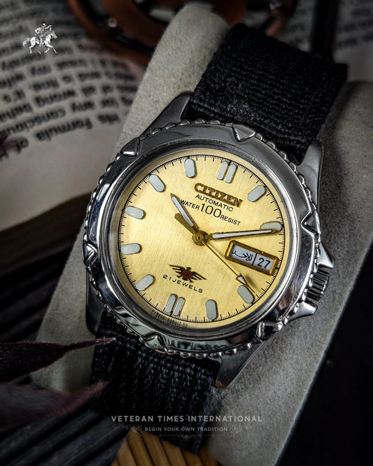 Vendor:UAE Armed Forces Eagle Crest - Golden Dial - 1970’s SwissRegular price $1,750.00 AUDRegular priceUnit price / per$1,952.00 AUDSale price $1,750.00 AUDSale -