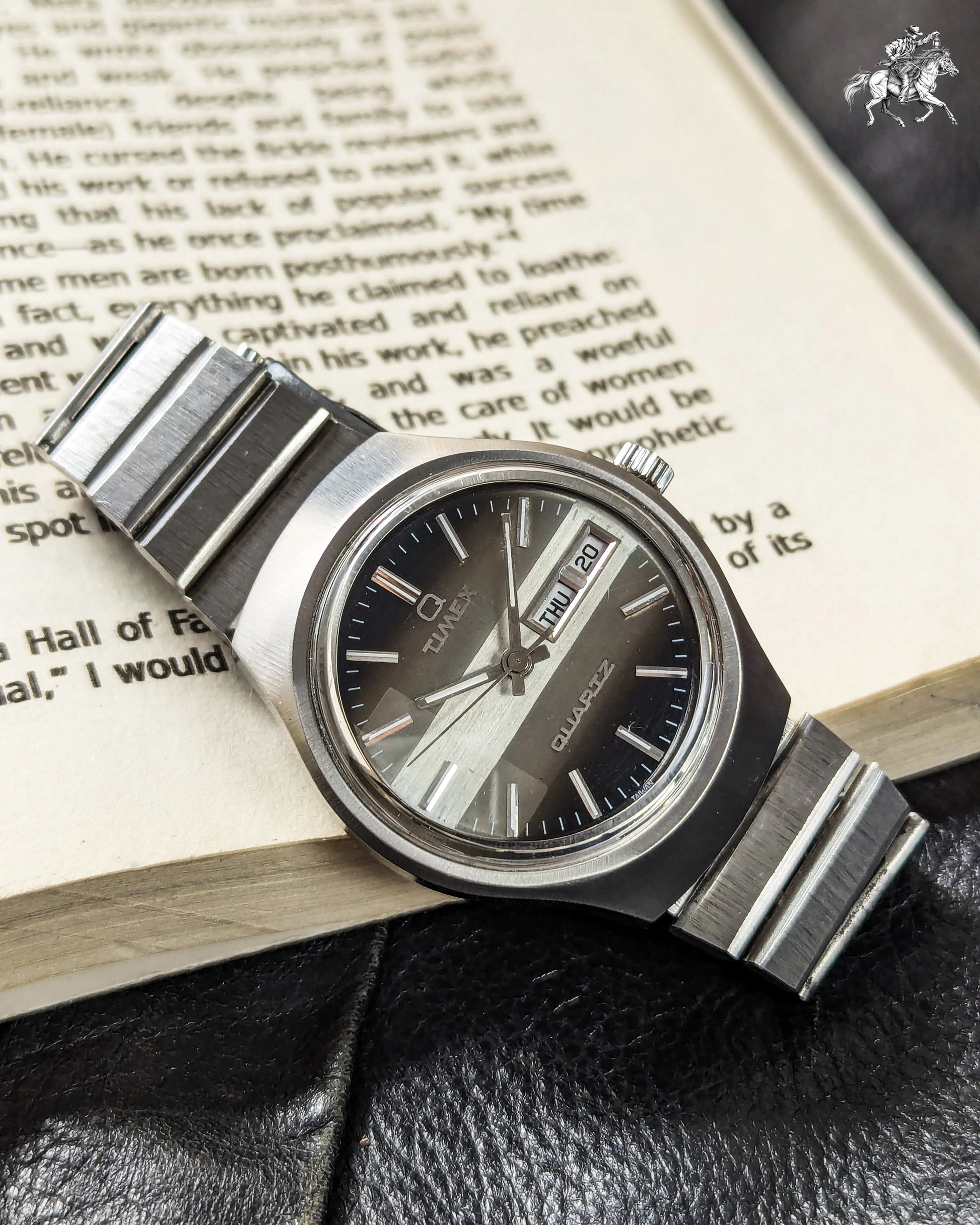 The Big Q Timex Quartz represents a pivotal moment in watchmaking history during the mid-1970s, when quartz technology was still in its exciting early stages. Released around 1976, this model showcases Timex’s achievement in making reliable quartz technology accessible to a broader market, at a time when quartz watches were seen as futuristic and highly desirable.