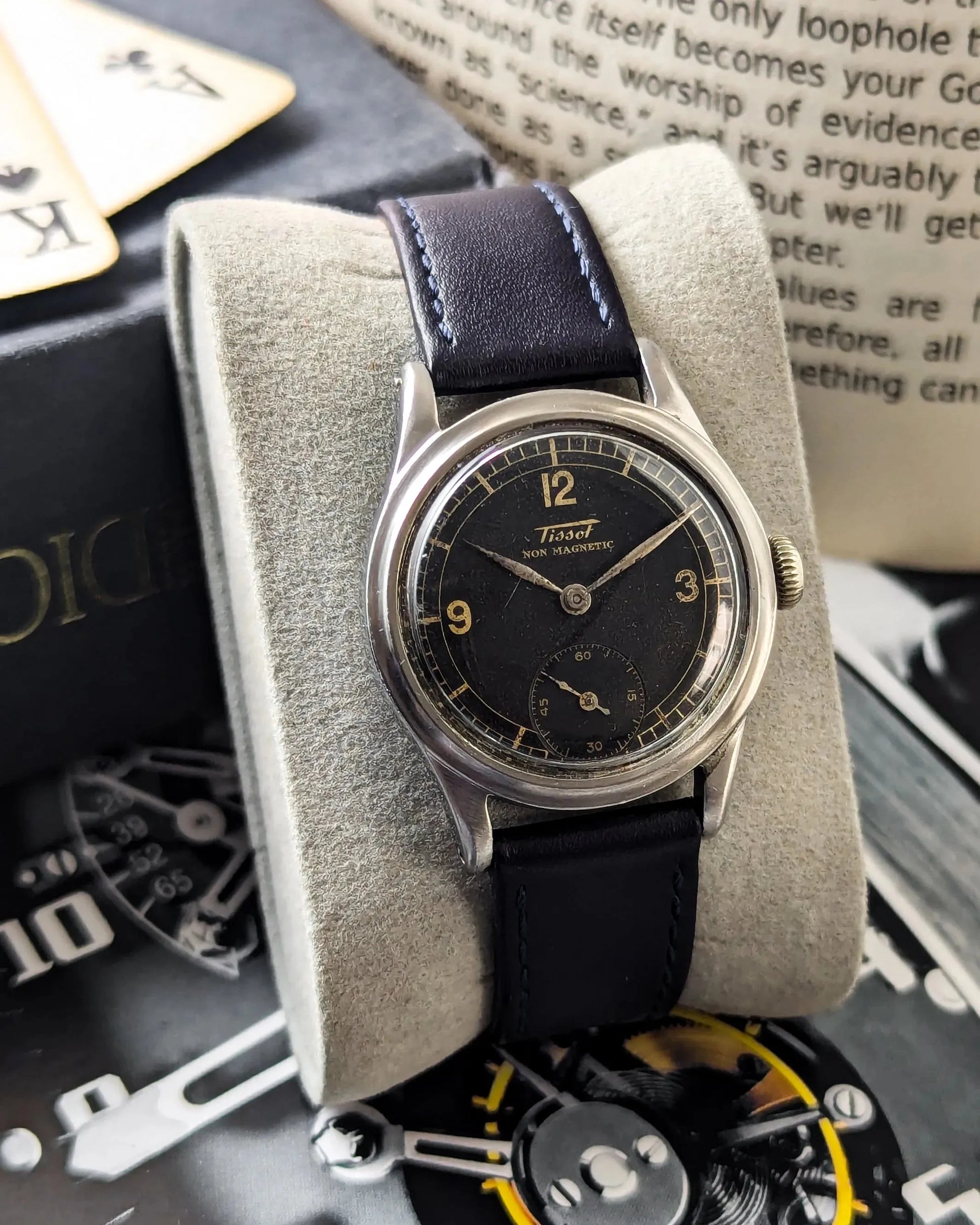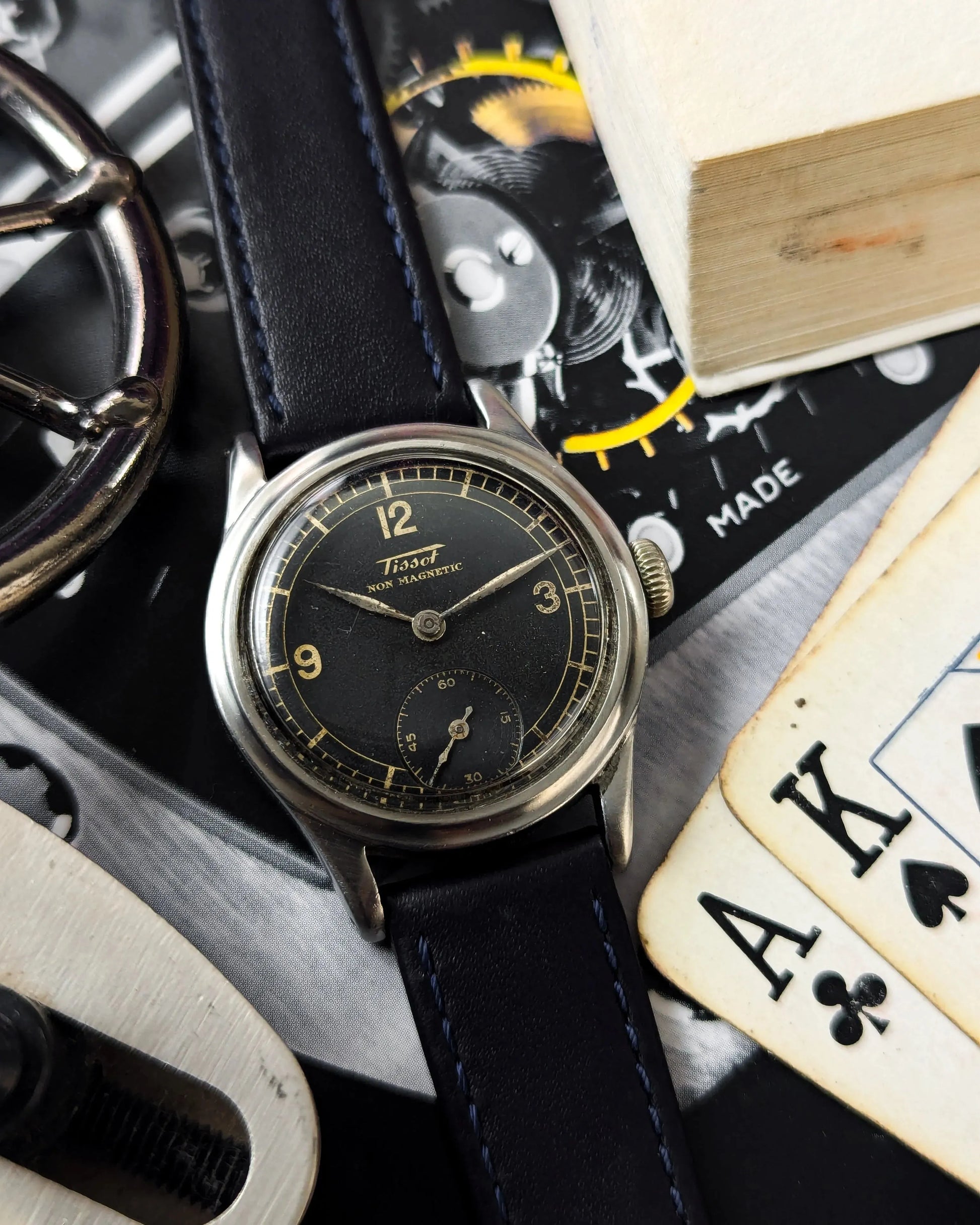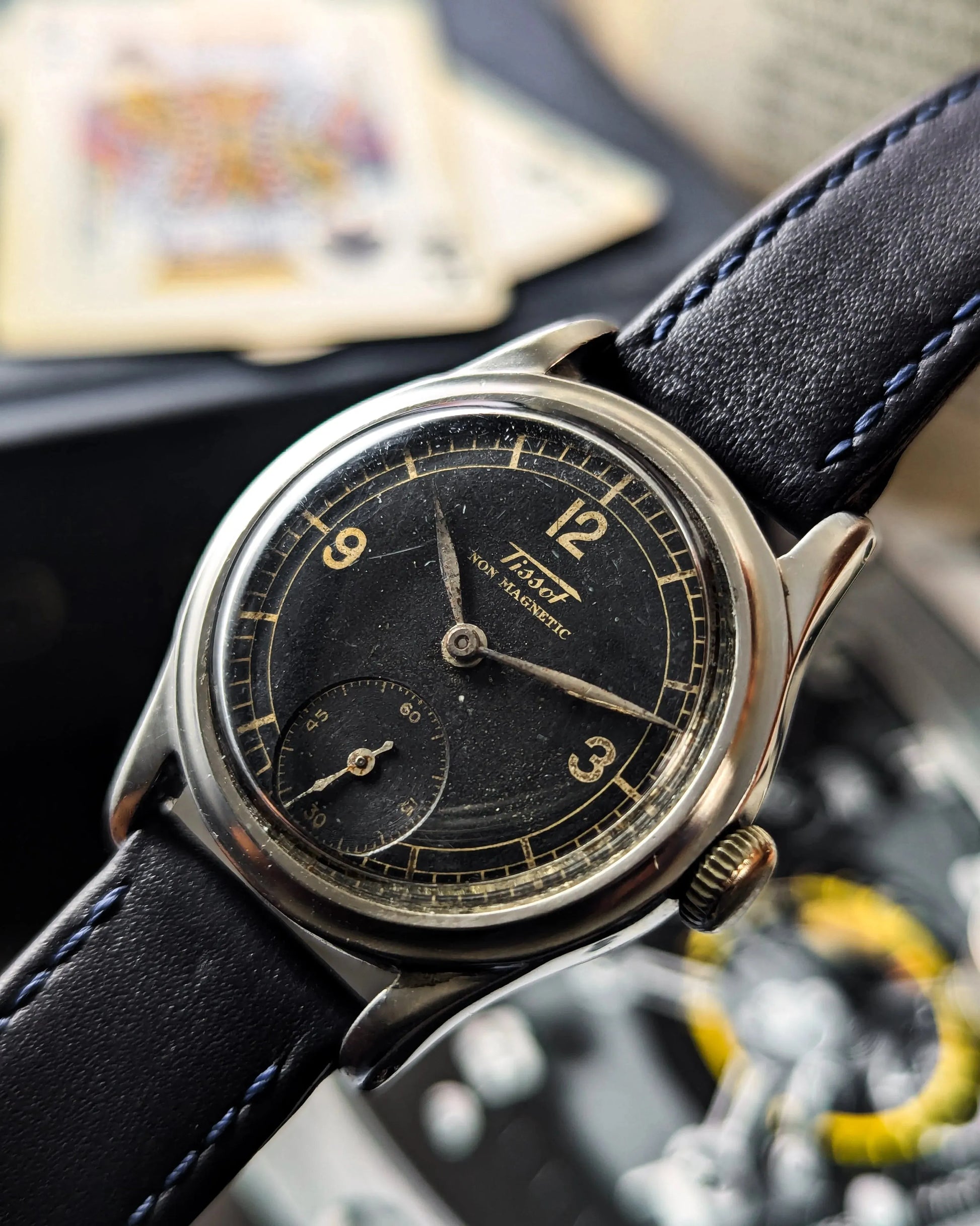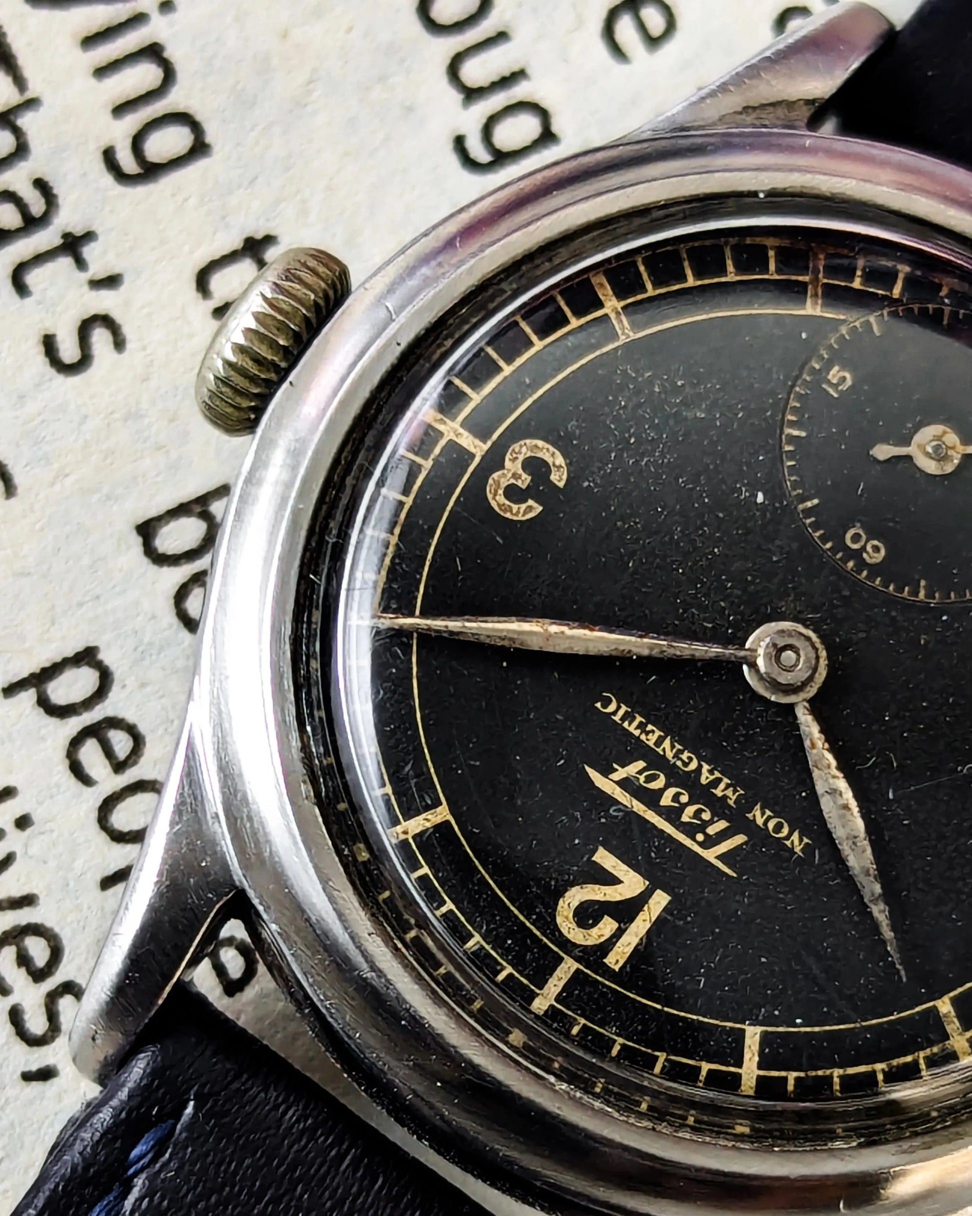 This is a stunning vintage Tissot. An 80-year-old timepiece, this watch was made in the Tissot factory in Le Locle, Switzerland in 1940’s bearing serial number 1154734. It uses the Tissot 510 calibre (which was produced between 1936 and 1949). It is a manual winding movement with a side-second dial.