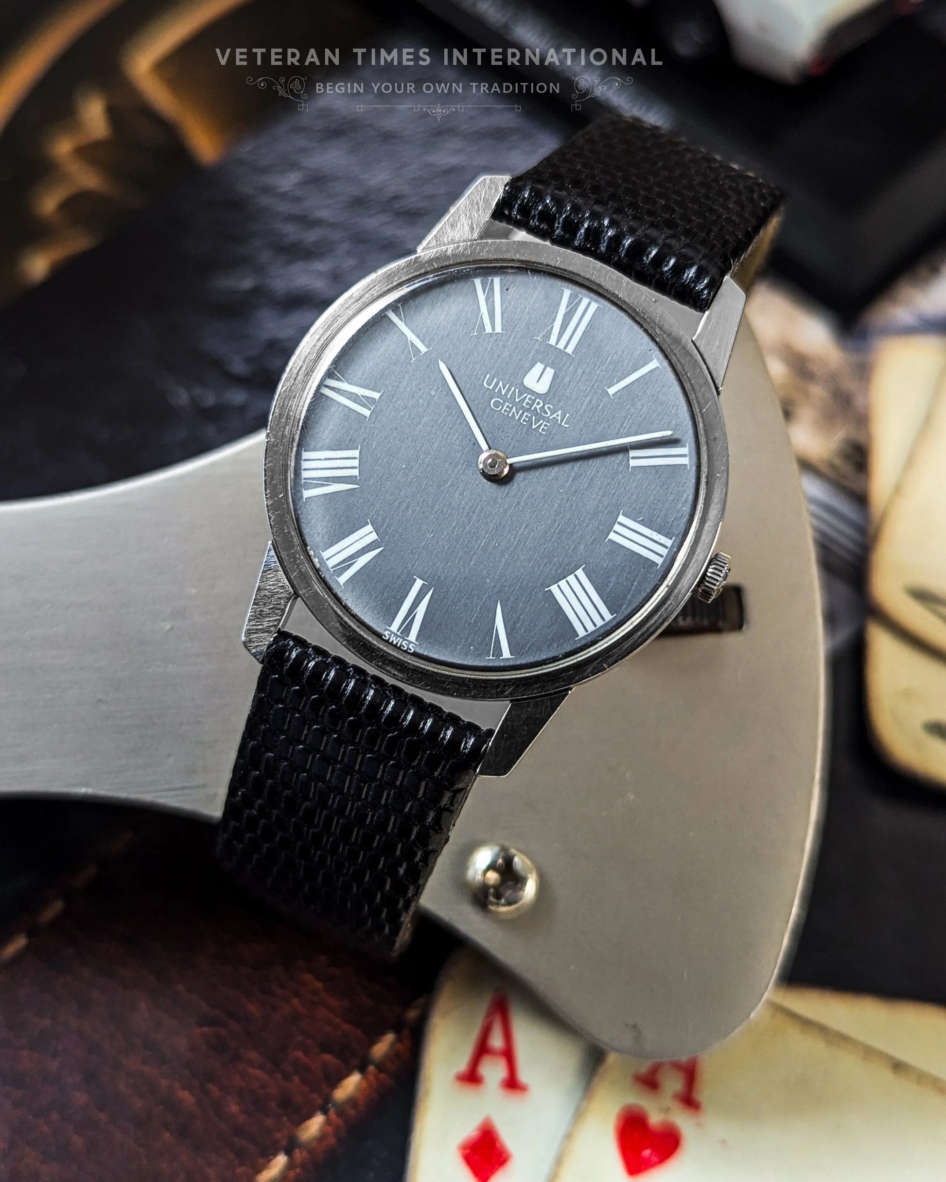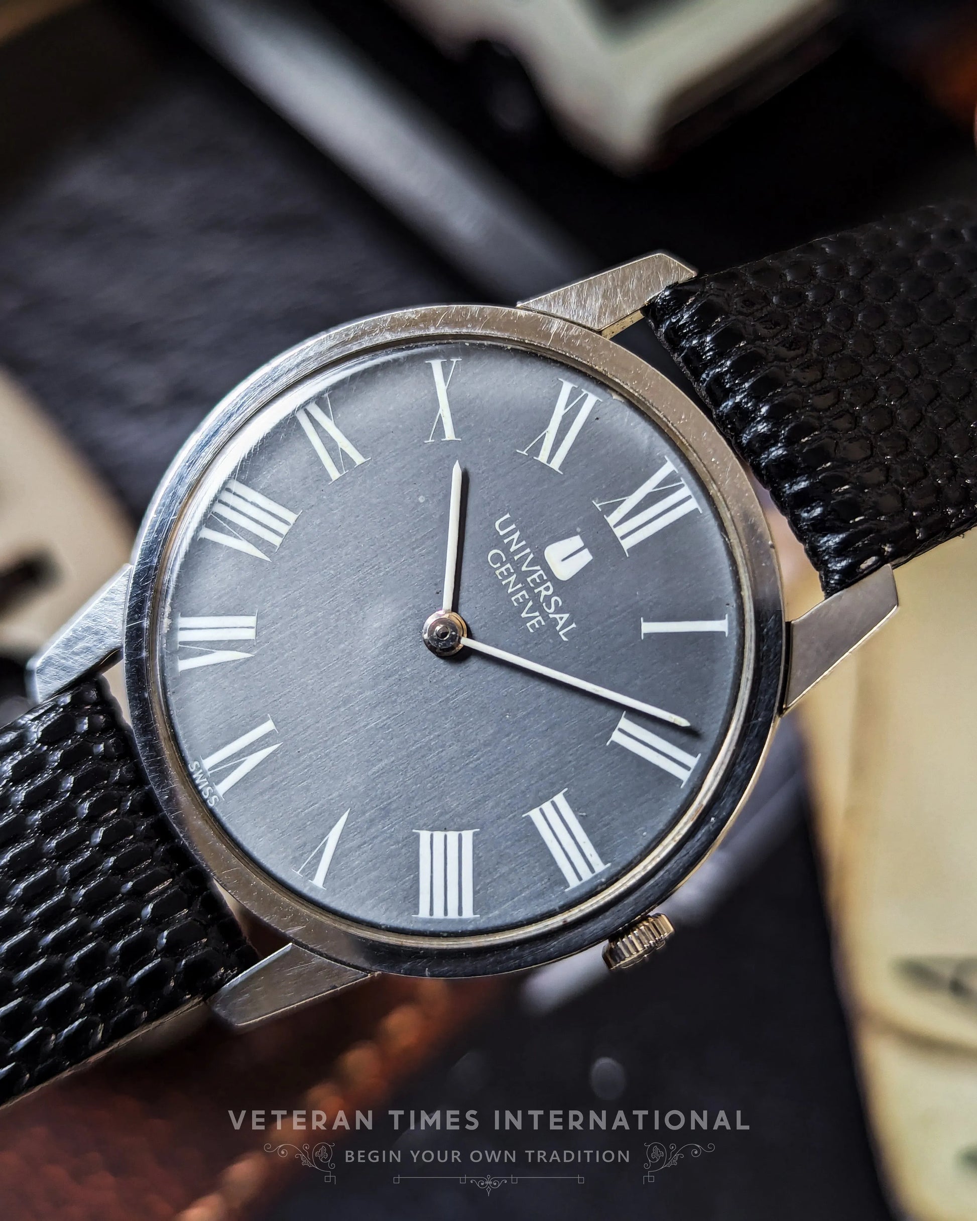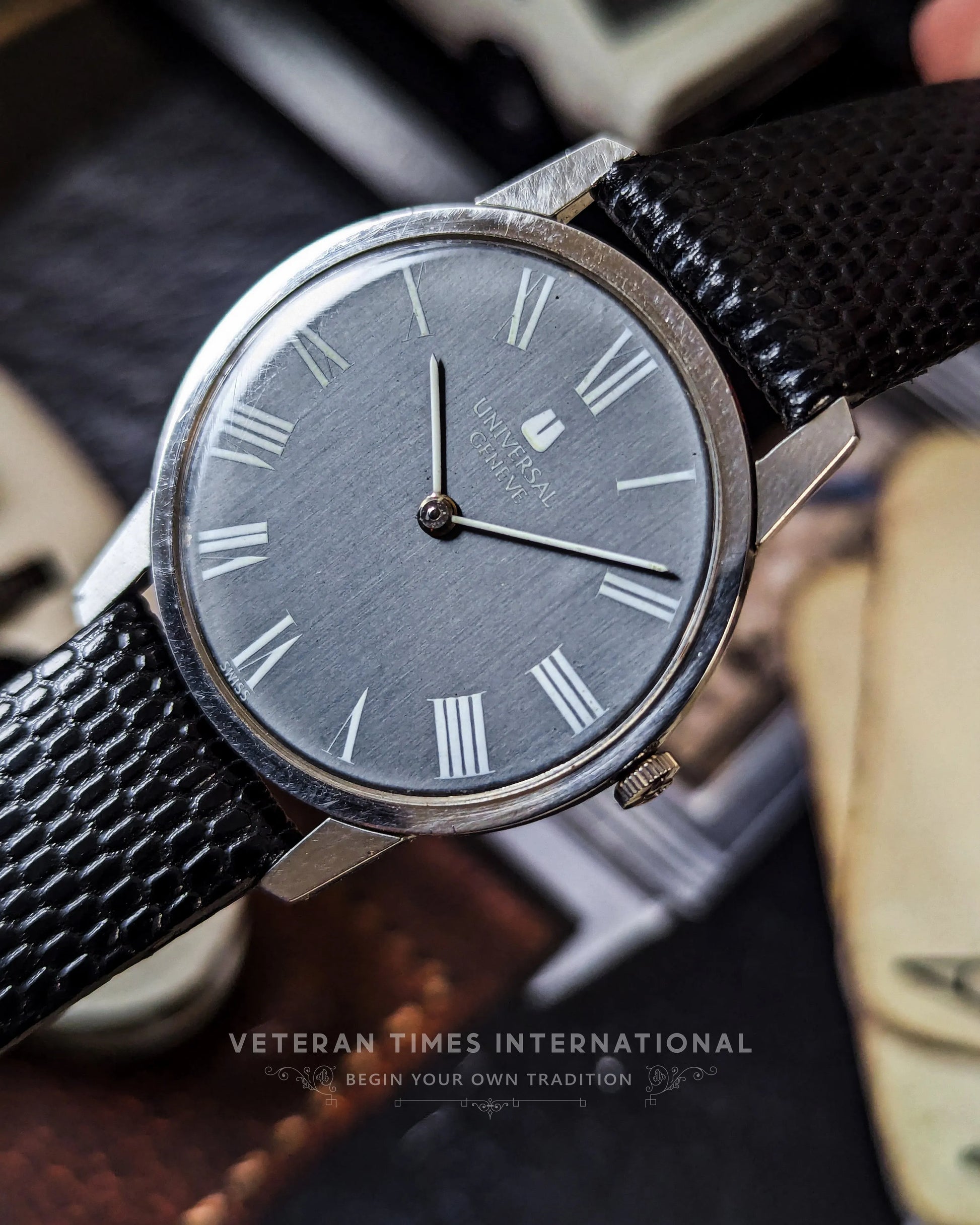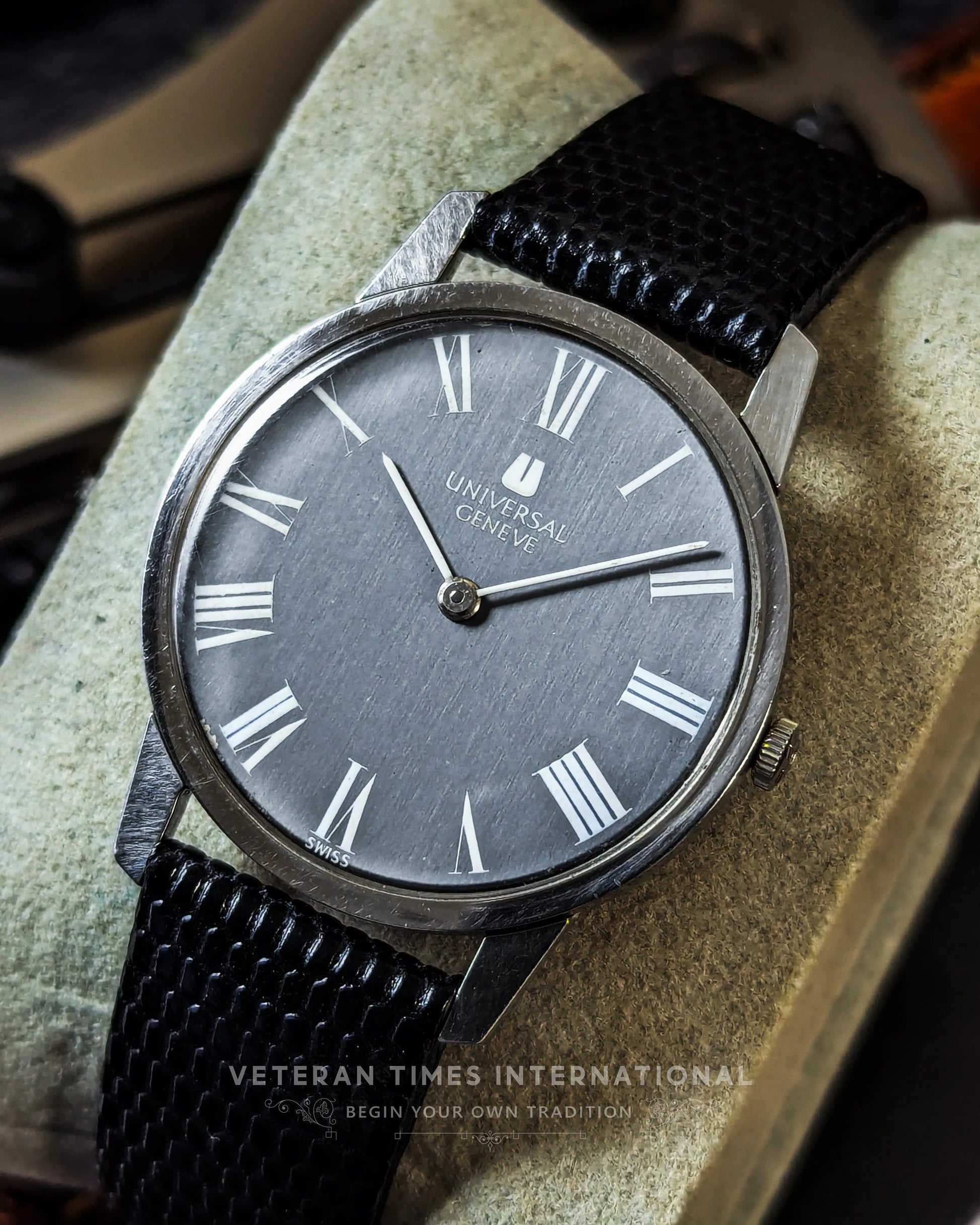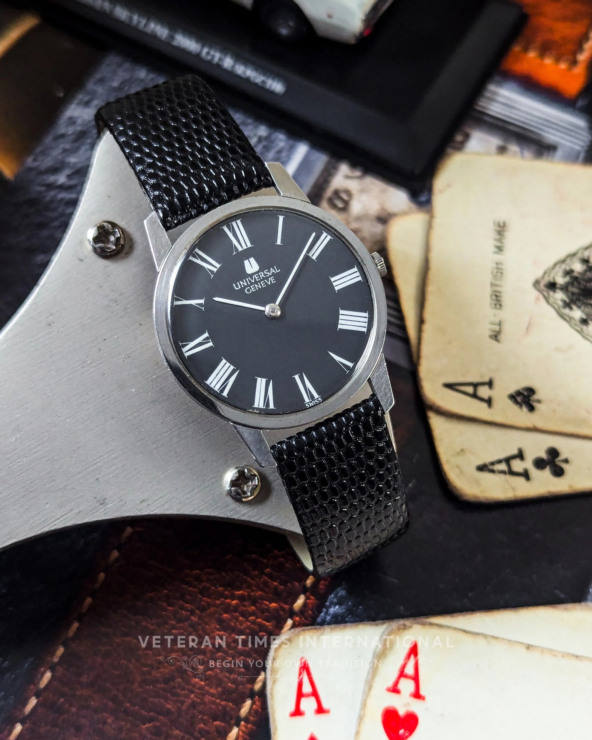 A classic vintage dress timepiece known for its traditional elegance and connection to Swiss watchmaking expertise is the Universal Genève Reference 842-101. It is a popular among collectors because of its simple design and Roman numeral dial, which represent sophistication and elegant luxury. It was created in the middle of the 19th century, which was a period for Swiss watchmaking, and it demonstrates Universal Genève's commitment to quality, creativity, and design.