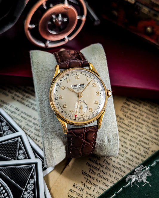 Vendor:Day/Month Apertures - 17J Manual Wind - Gold Plated - 1970s SwissRegular price $1,667.00 AUDRegular priceUnit price / perSale price $1,667.00 AUD -