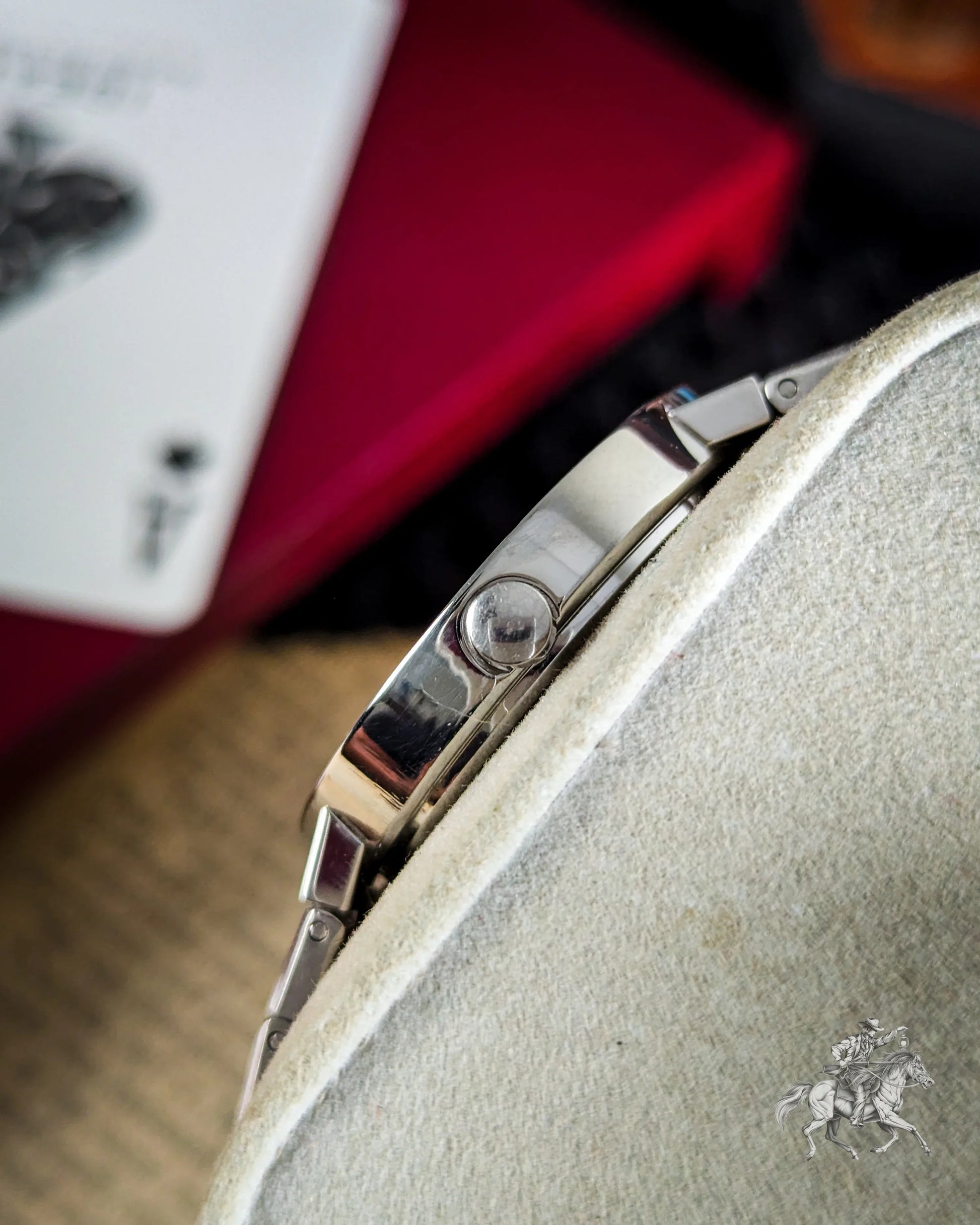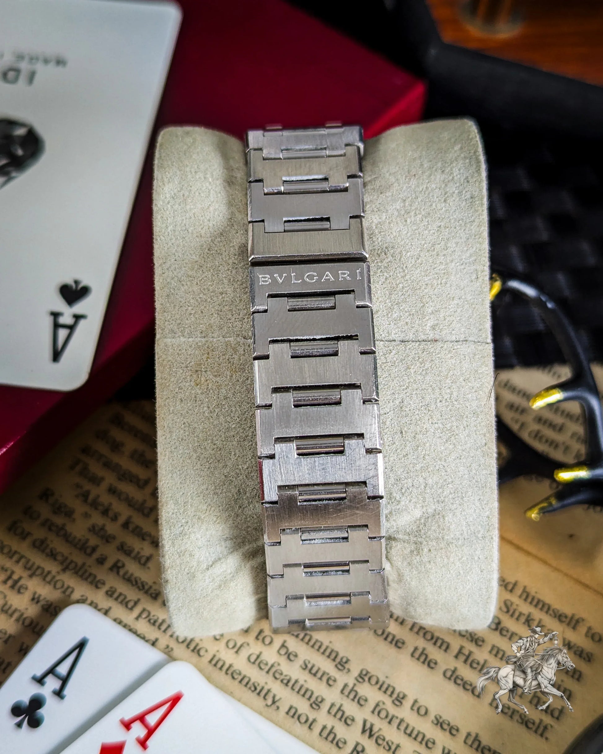 Powering this elegant watch is a precise Swiss movement, ensuring reliable and accurate timekeeping. The Bulgari Bulgari collection is celebrated for its unique blend of jewelry inspired design and horological craftsmanship, making it a prominent luxury icon. It comes paired with a matching integrated stainless steel bracelet, completing its seamless and distinguished appearance.