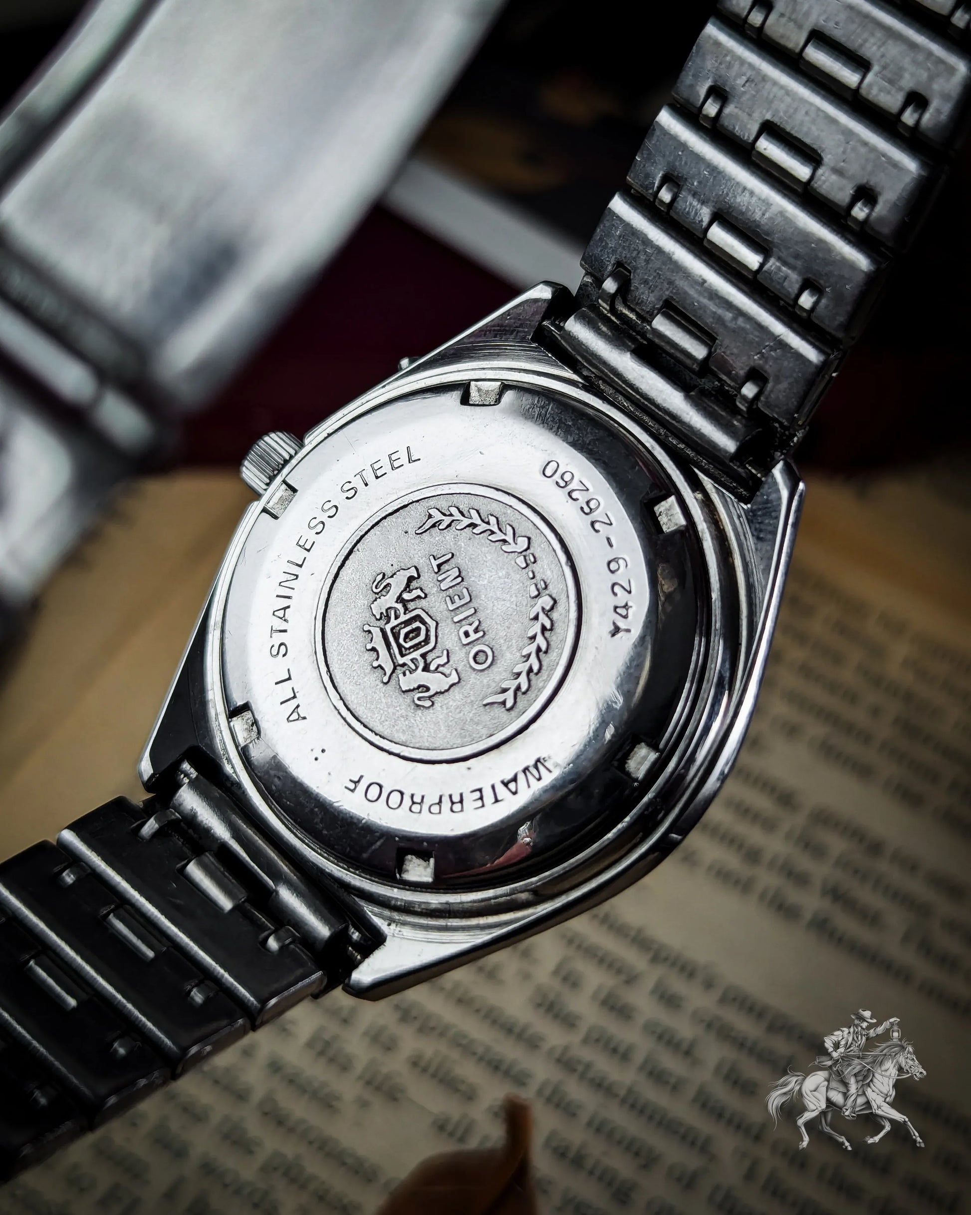 A stunning Orient ChronoAce Y429-26260, a true NOS (New Old Stock) gem from 1973 JDM. This timepiece is a rare find, combining technological complexity with aesthetic elegance, making it highly exclusive for collectors.
