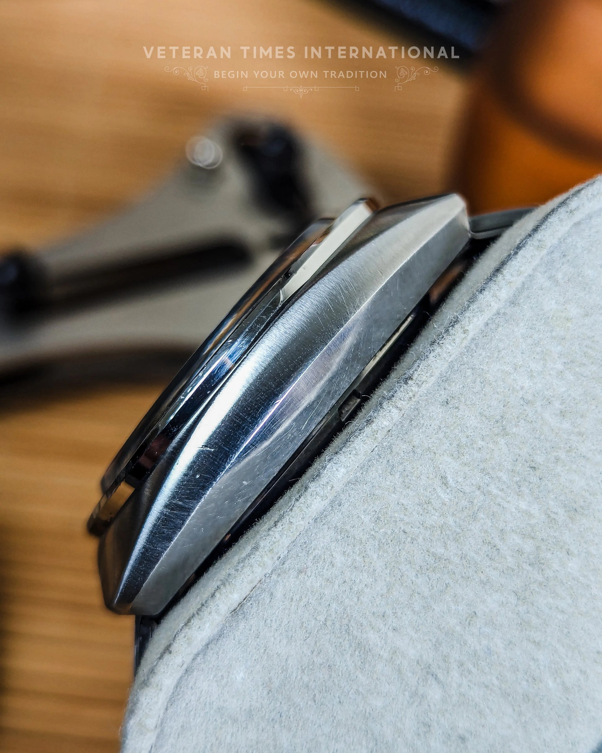 This variant is unique and pops out beautifully on the wrist. The dial is coded "JAPAN 6139 -7040T" and comes with a beautiful Champagne-colored dial. Looking deeper into the other dial elements, the "SpeedTimer" logo sits prominently mid-dial opposite the blacked-out day/date frame. The bracelet comes with a flat three-link design coded XJA161 that's tapered to attach under the lugs seamlessly.