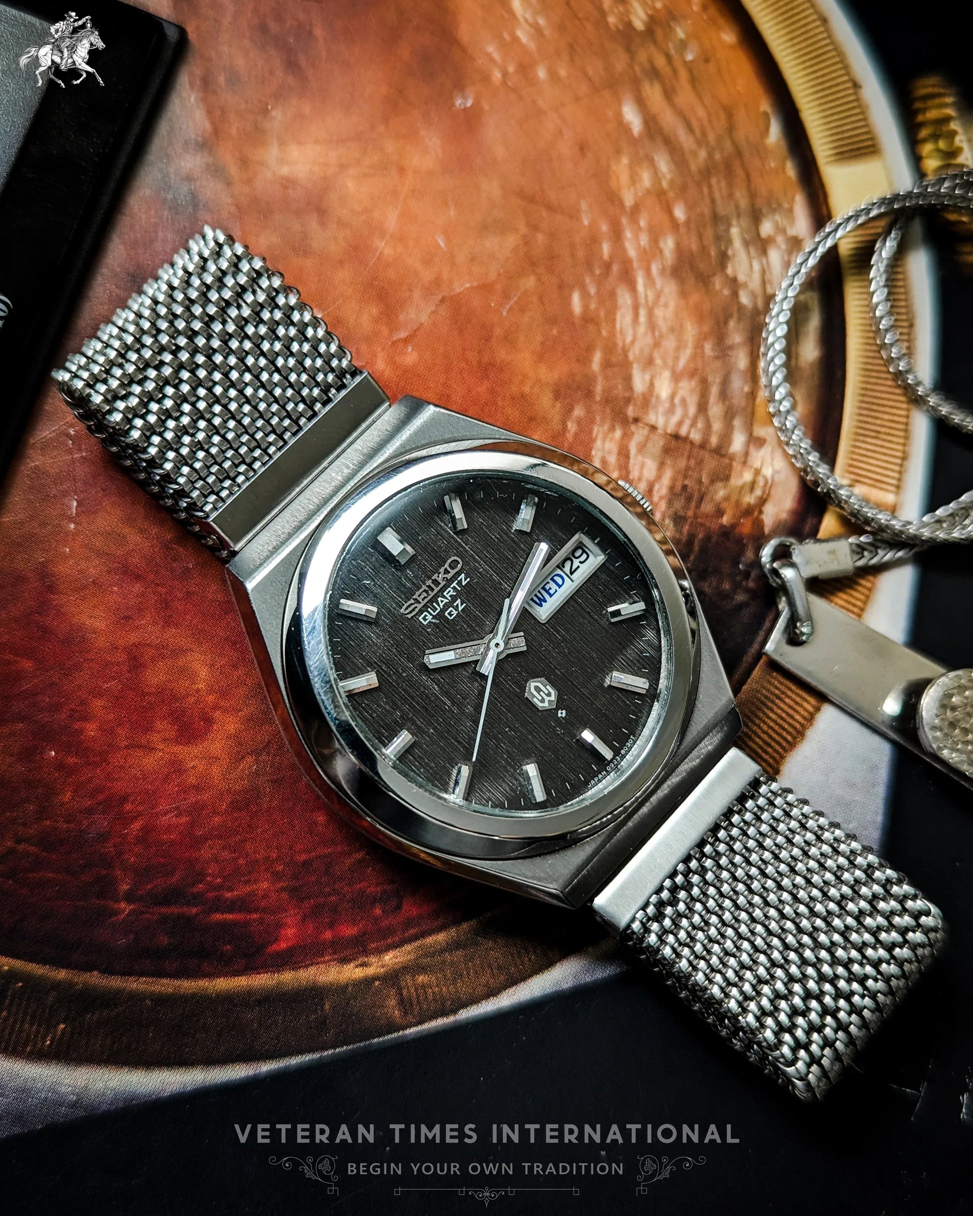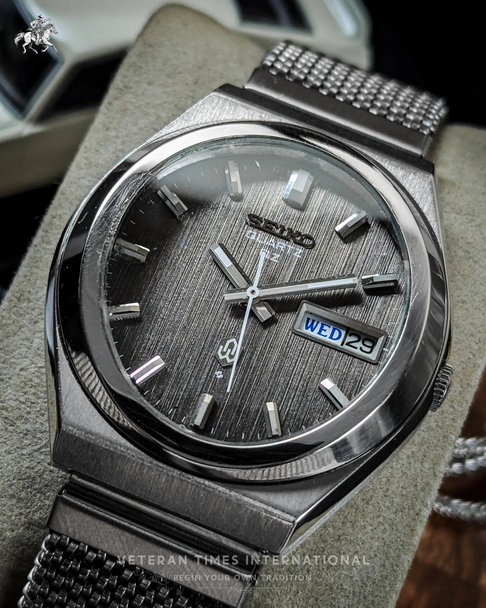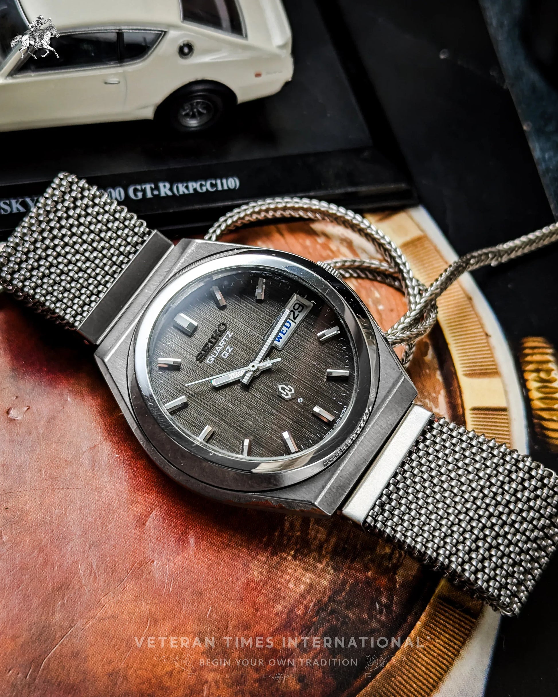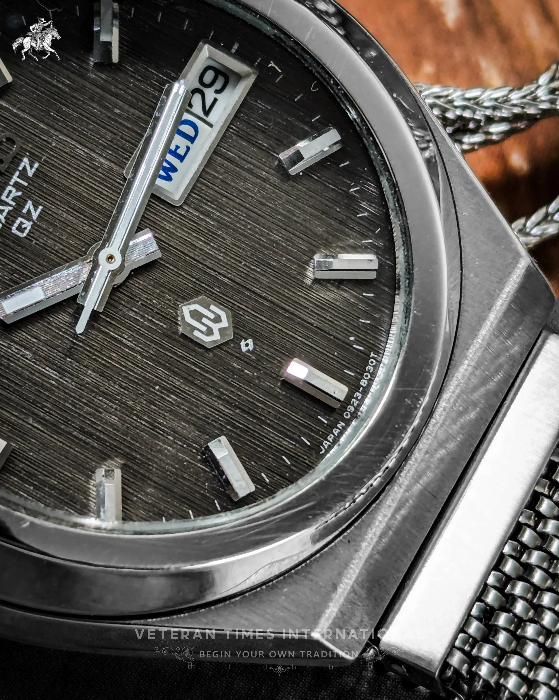 The Seiko Quartz QZ 0923-8030 A, with its distinctive features such as Linen Oak Texture Dial and silver steel Case the date display at 3 o'clock, Stick hands, Numeral indices, and a beautiful bracelet, belongs to a lineage of Seiko quartz watches that were categorized into SQ, QT, QR, and QZ models. This system was established to distinguish these watches based on their quality and specifications. They were predominantly designed for the Japanese Domestic Market (JDM) and were manufactured between 1971 and 1975. Export models were labeled differently, including SQ 3003 (QT), SQ 2002 (QR), and SQ 4004 (QZ).