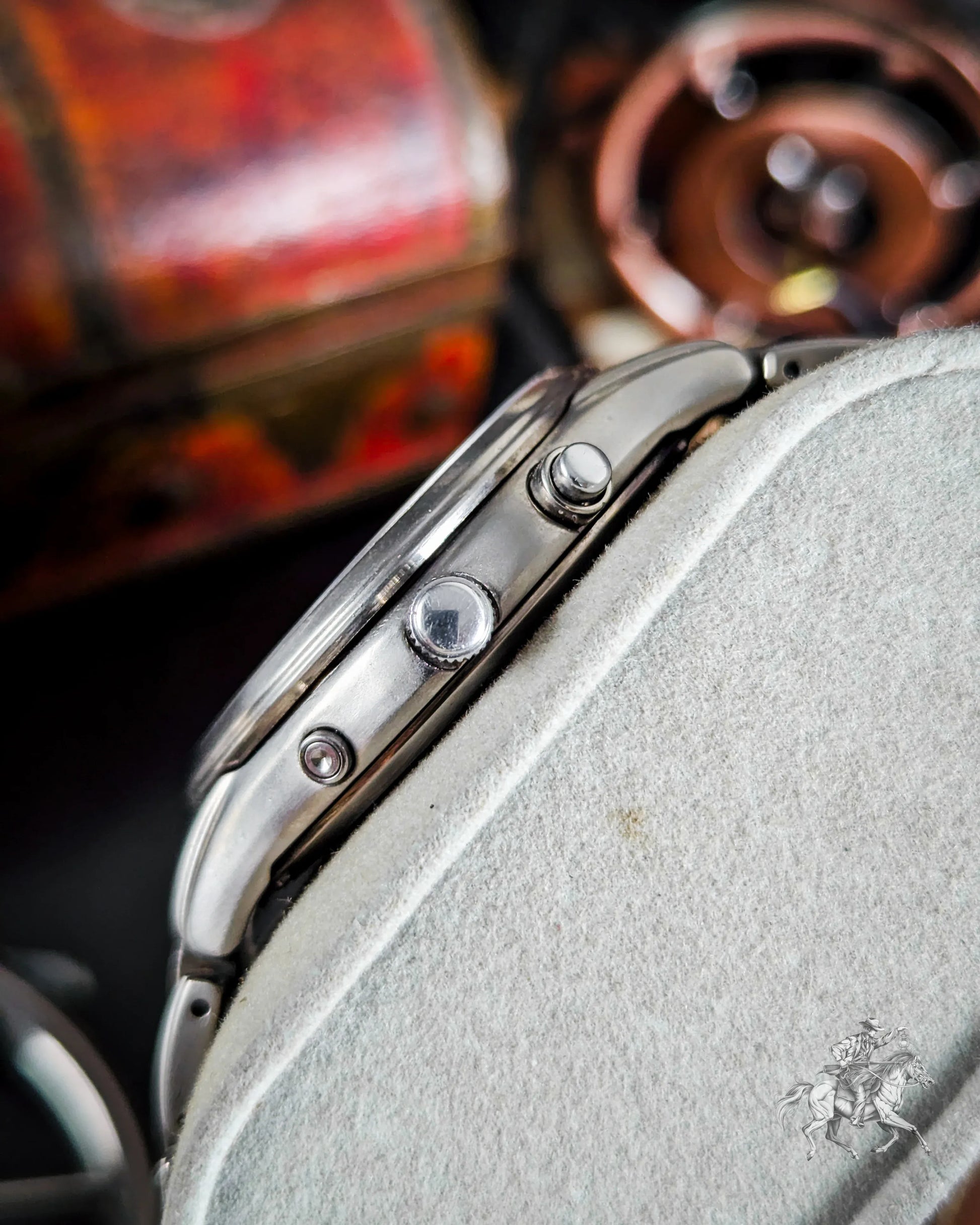 At its core is the precise Seiko Caliber 7B42 movement. This advanced caliber, made in Japan, drives all functions with exceptional accuracy. The watch is cased in China, a common practice for modern manufacturing. With its 100 meter water resistance, this Seiko offers both sophisticated technology and practical durability.