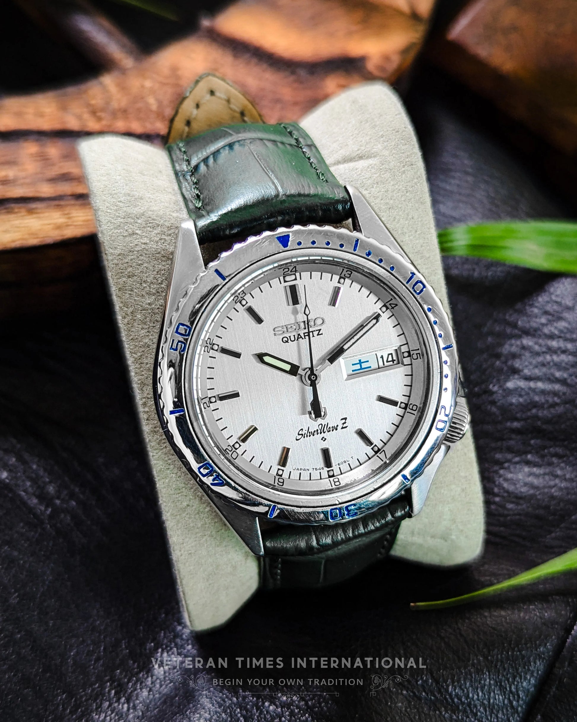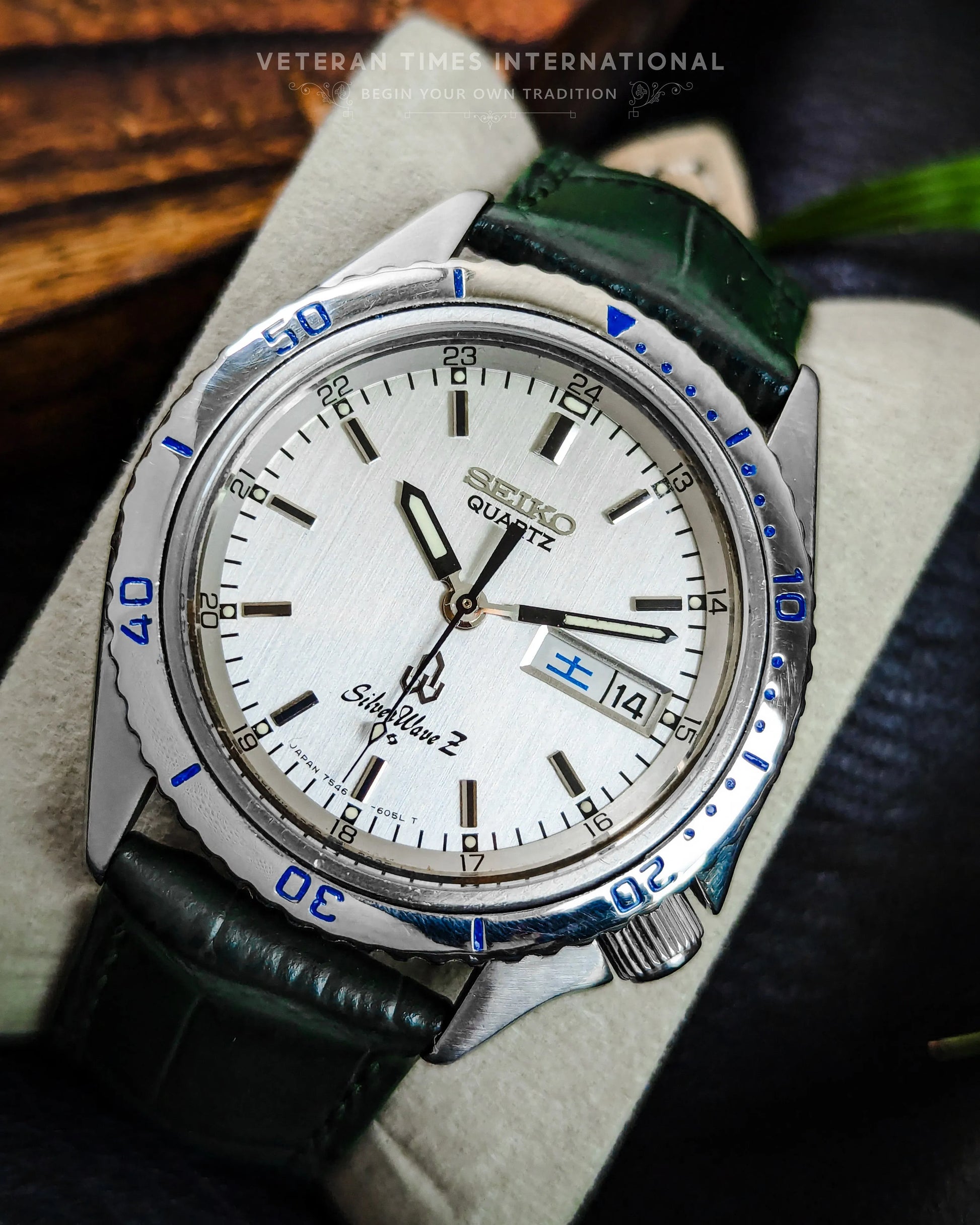 Silverwaves then are all about the casing, one can expect a screw down crown at 3 or 4 o'clock with crown guard and a screw in case back – even a unidirectional bezel. Most other Quartzes were not so equipped, sporting a battery hatch for example and a push crown. Looking at the dial legibility is key, especially at night. The markers of a Silverwave certainly can be all lume, the hands then of course as well, and the seconds hand even has that lume tip usually found in divers.
