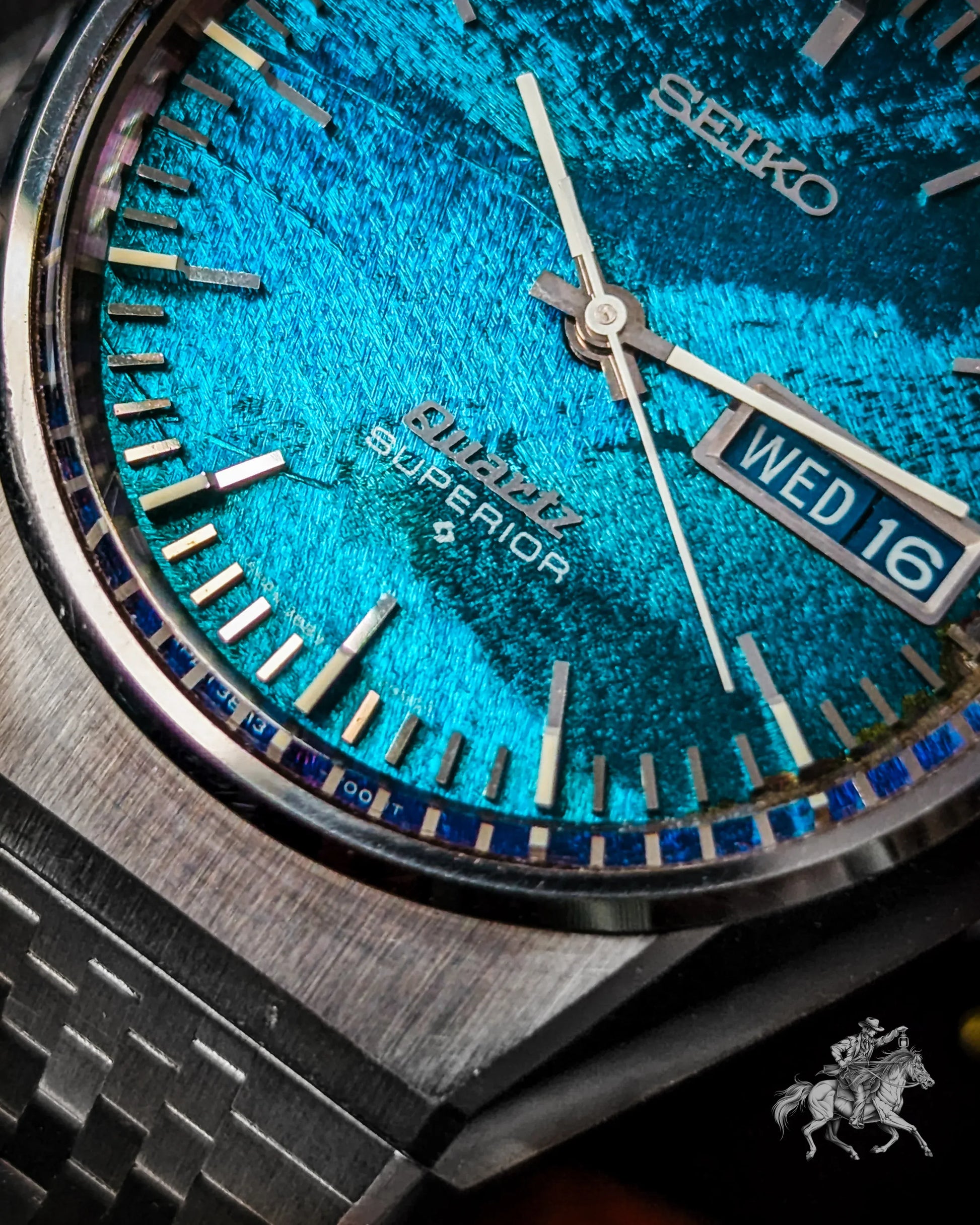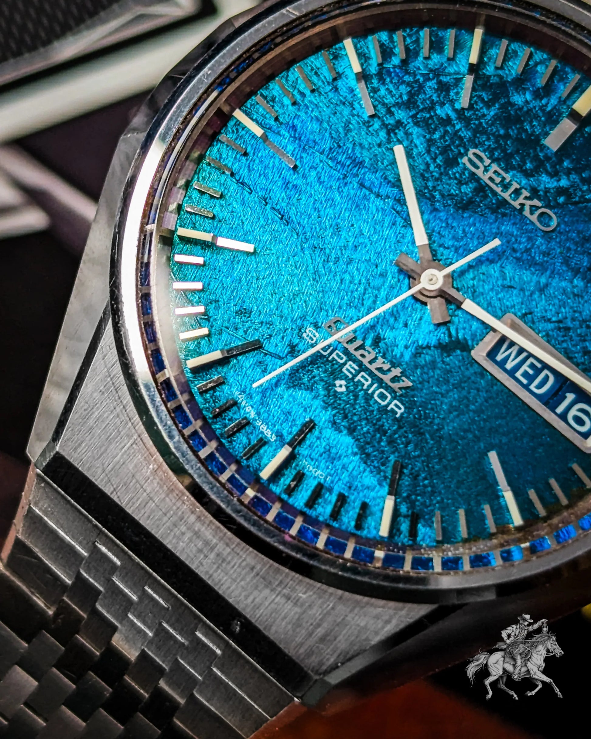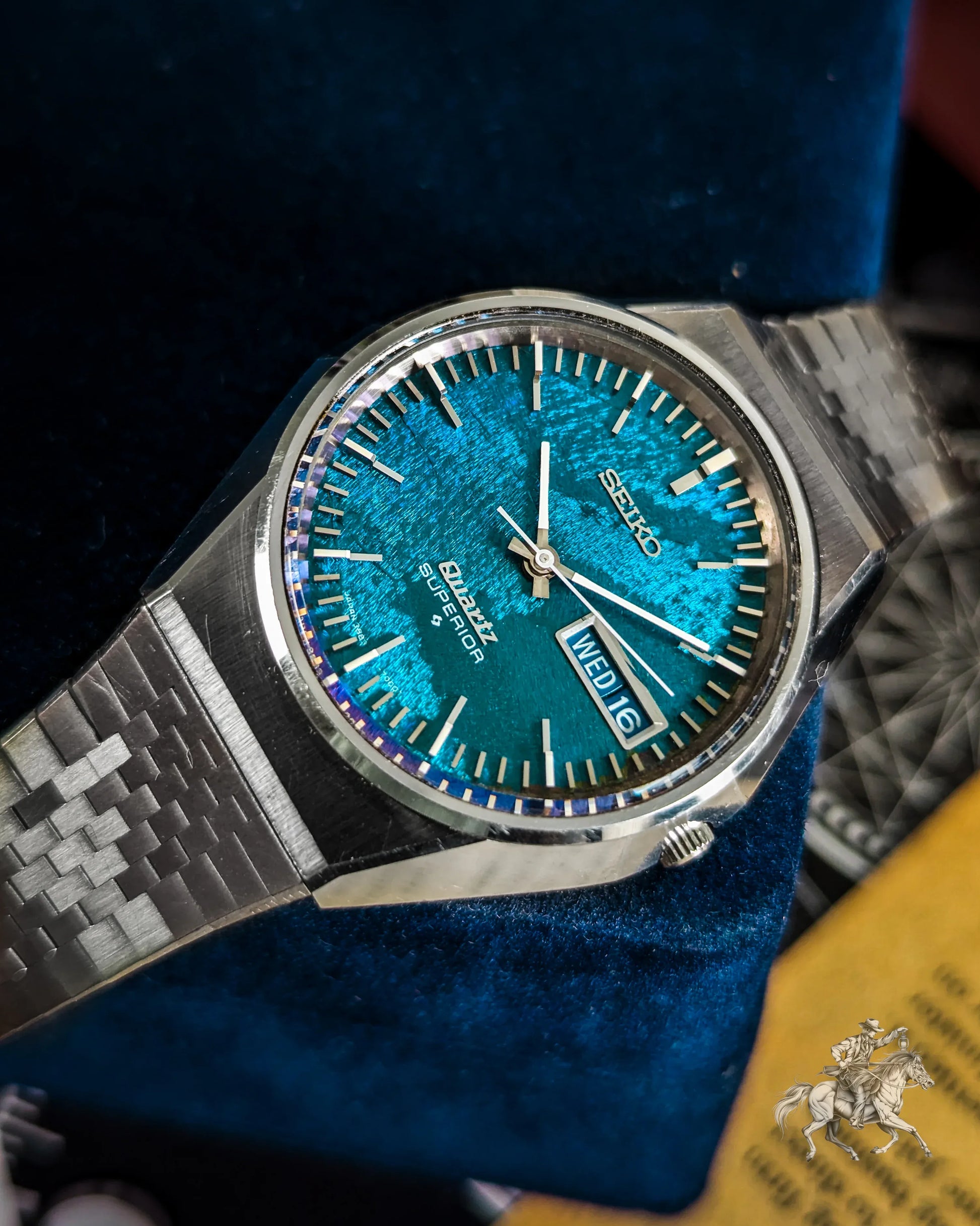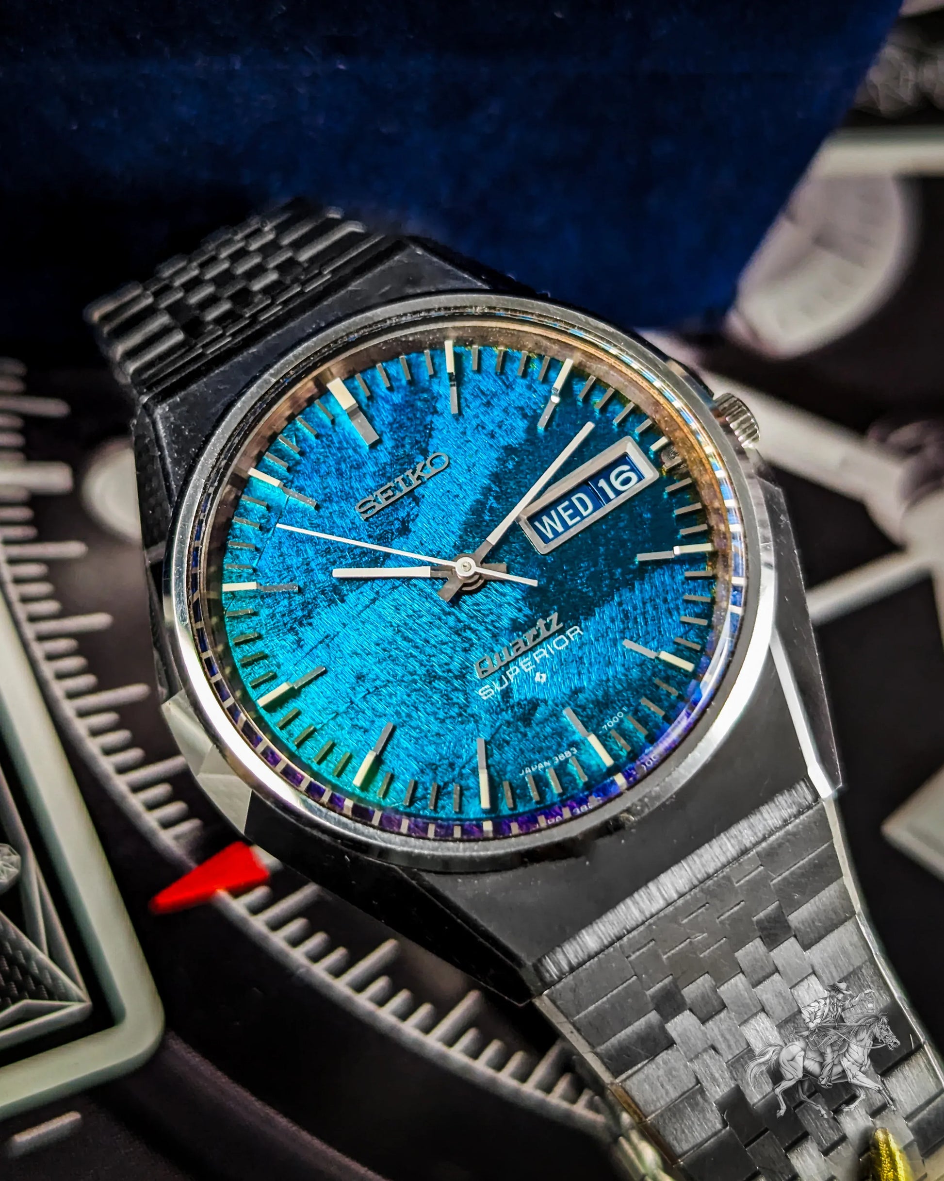 Now available for sale is a remarkable piece from that legacy, the Seiko Quartz Superior Ref. 3883-7000. Renowned for its mesmerizing "Morpho" or "Butterfly" dial that shifts between deep green and blue, this 1974 model was priced at a premium 220,000 JPY, twice the cost of a Grand Seiko 61GS. This example is the rarer JDM variant, with “Quartz Superior” elegantly printed on the lower half of the dial.
