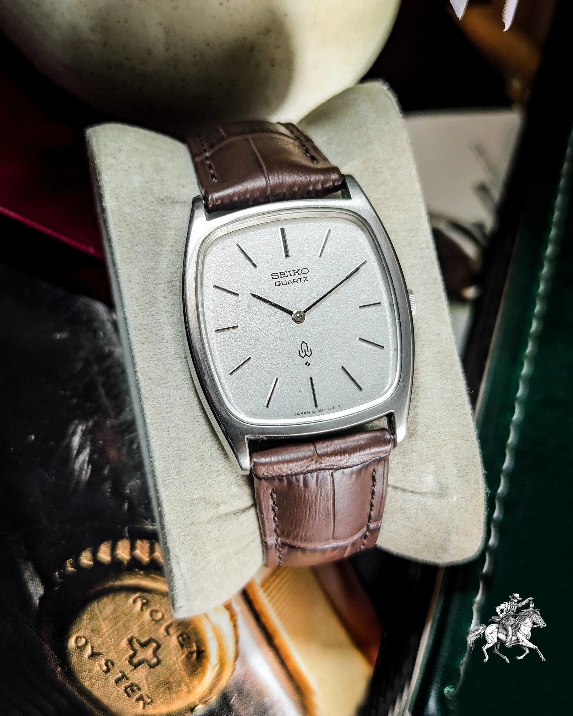 This is a fantastic find that proves less is more. This Seiko Quartz Tank is a beautiful example of minimalist, high-quality design from the mid-1970s. With its classic tank case, elegant silver dial, and a subtle QT emblem that signifies its higher-end status, it’s a watch that is both understated and sophisticated. It truly captures a moment in time when Seiko was perfecting the art of quartz watchmaking.