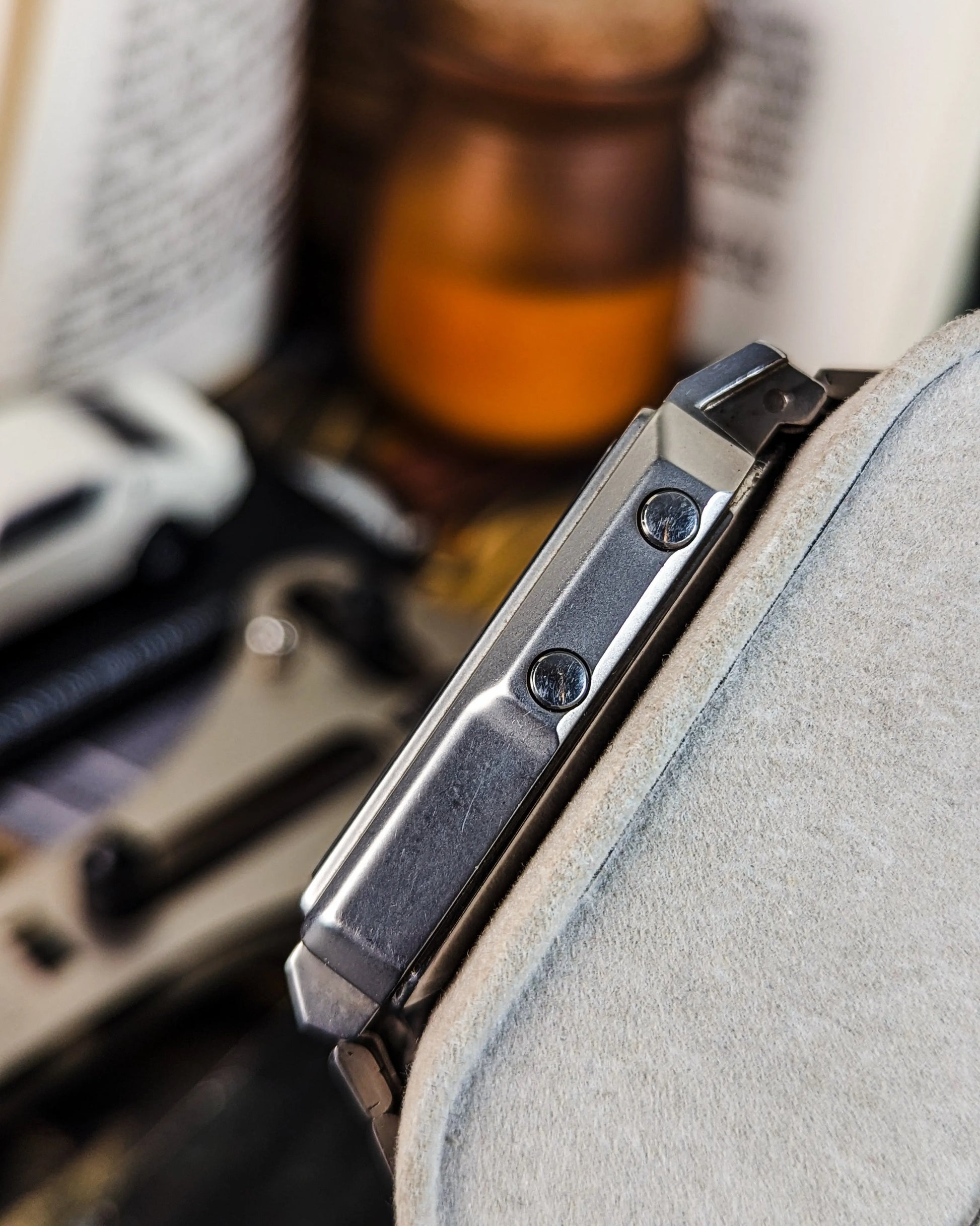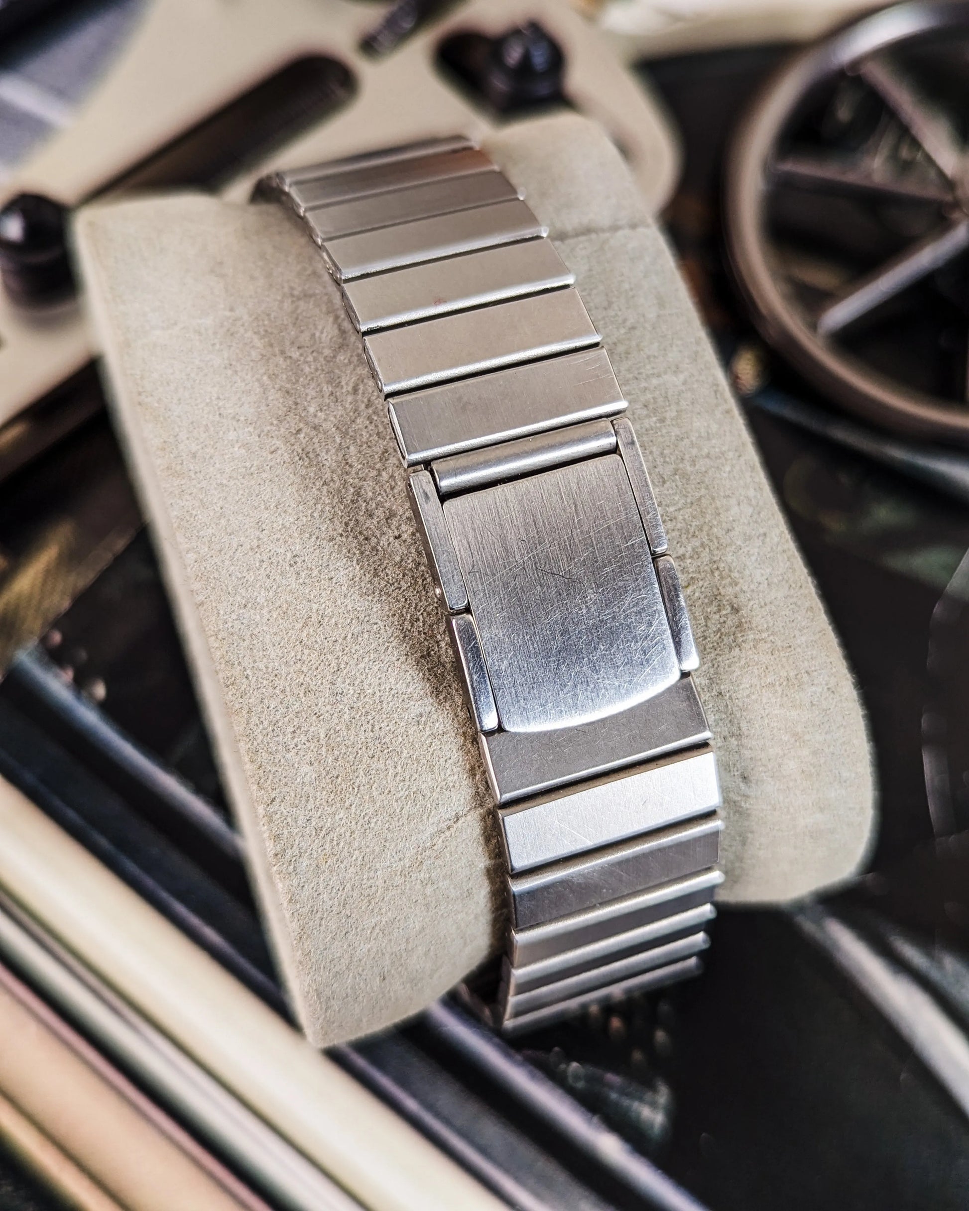 The stainless steel case and original bracelet contribute to the watch's durability and vintage aesthetic. The digital display offers clear legibility, and all buttons are confirmed to be functional, as is the sound feature. This particular model is known for its association with the "James Bond" era, adding to its desirability among collectors.This Tellevision Watch is also known as the World’s Smallest.