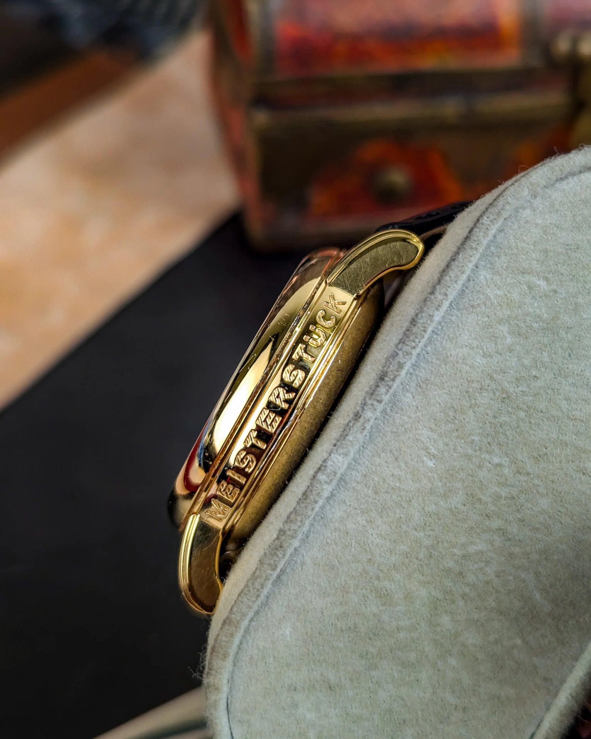 The aesthetic is quintessentially sophisticated, utilizing a beautiful "onion" style crown and a unique date window at 6 o'clock that maintains perfect dial symmetry. Flipping the watch over reveals the "Meisterstück" engraving alongside the reference and serial number CC 16207, confirming its authentic Swiss origin and high-tier status within the Montblanc catalog. The watch features a slim profile that allows it to sit with effortless grace on the wrist, making it a versatile masterpiece for the discerning collector. This is an essential acquisition for an enthusiast who appreciates the legendary heritage of the Montblanc name, the warmth of yellow gold, and the refined precision of Swiss mechanical excellence.