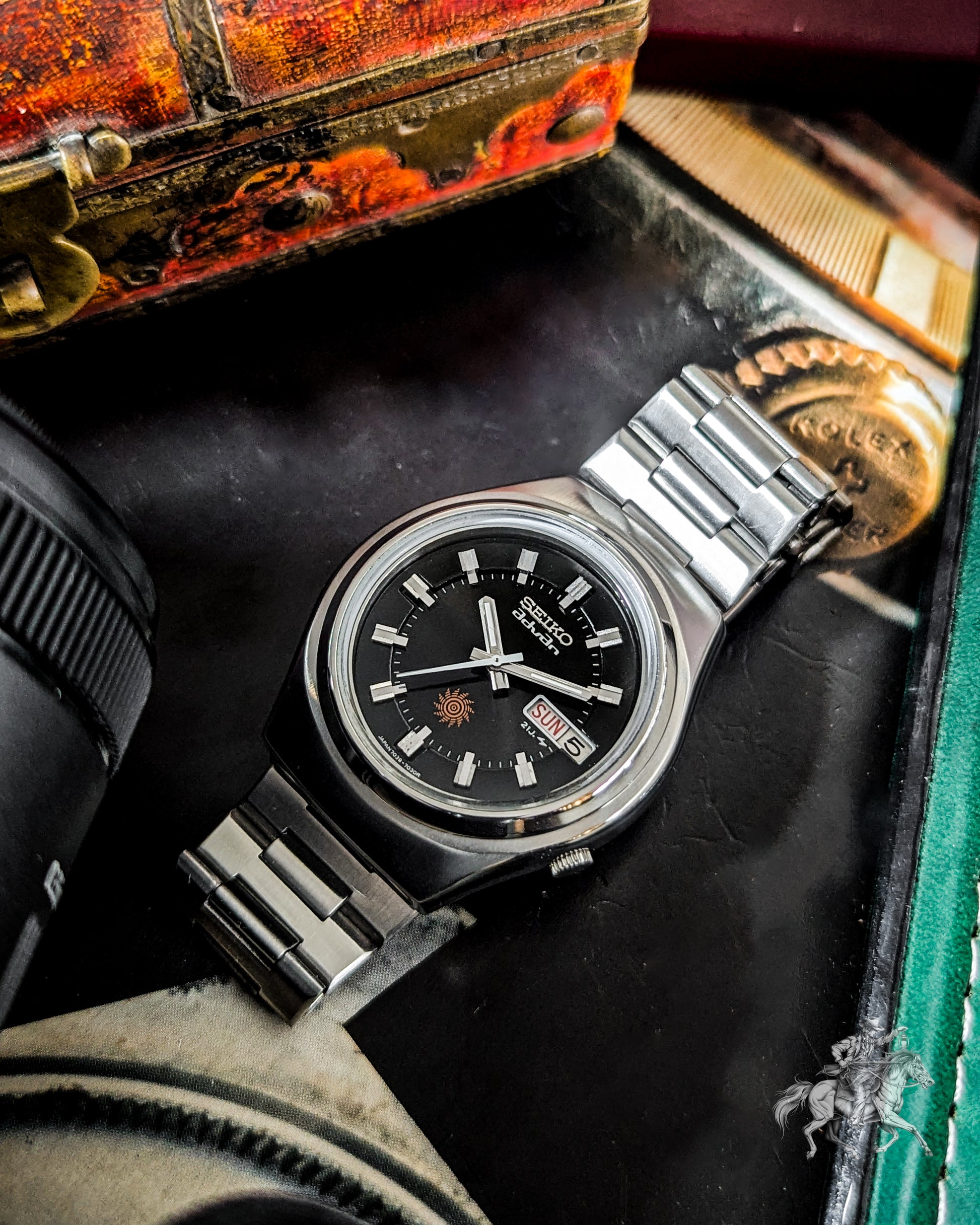 Powering this beauty is the Caliber 7039, a robust 21-Jewel automatic movement produced by the Daini factory. This caliber is a reliable workhorse and features the desirable quick-set day and date function, which operates through the crown. The quick-set day is particularly cool as it displays the day in both English and Kanji, a signature detail of its JDM origin that connects the wearer to the watch's Japanese heritage.