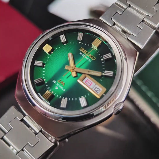 At the heart of this timepiece is the Seiko Caliber 5606, a 23-Jewel automatic movement that is mechanically related to the top-tier King Seiko and Grand Seiko models of the time. This caliber includes premium features your customer will appreciate: hand-winding capability and hacking seconds (the second hand stops when setting the time for ultimate precision). This was not standard on mid-range watches, highlighting the superior quality of the Lord Matic line.