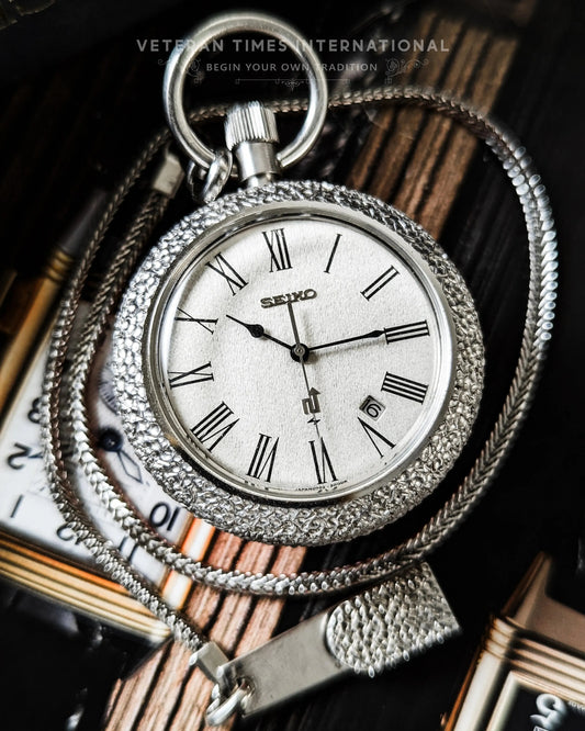 Seiko Elnix Silver Hammered Pocket Watch - 0702 - 3010