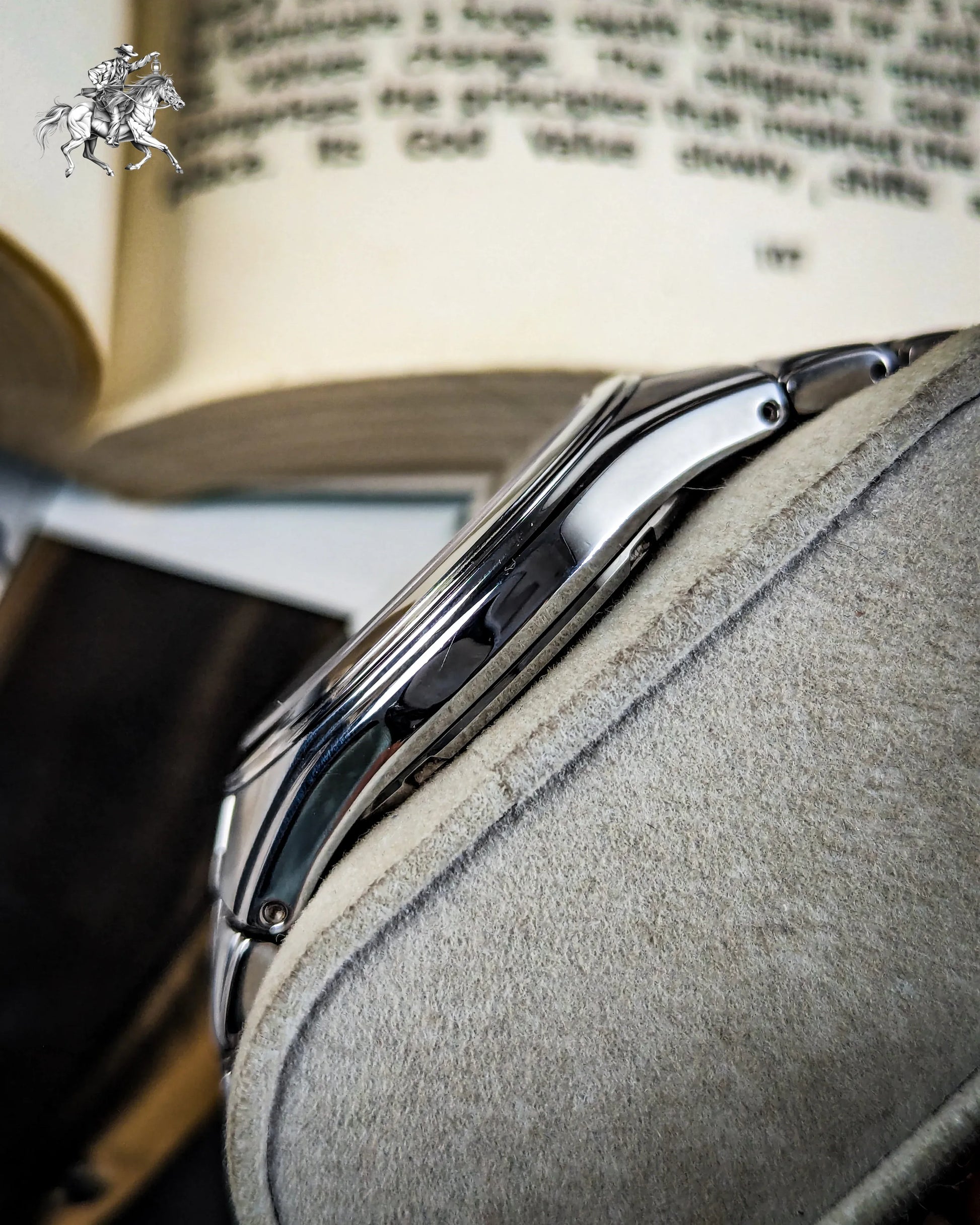 The Seiko Dolce 5B21-0AC0 is a quiet powerhouse, simple on the outside, smart underneath. With its radio wave control feature, this watch keeps itself perfectly in sync by receiving signals from atomic clocks, so you never have to worry about adjusting the time manually. It’s a great option for anyone who values precision without the hassle.