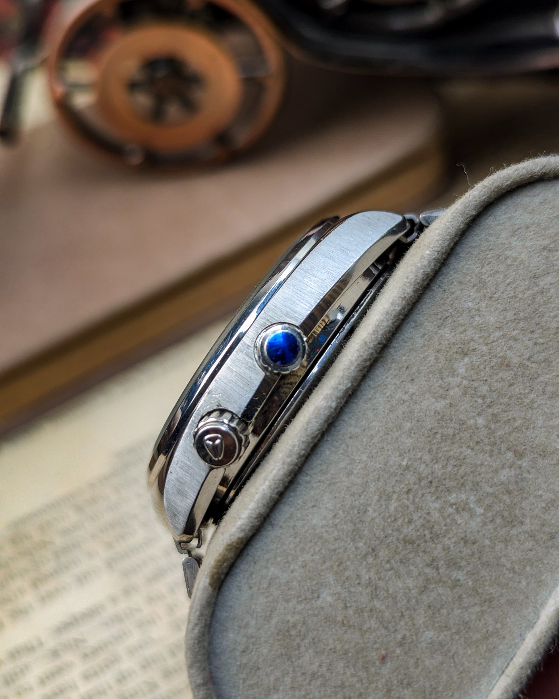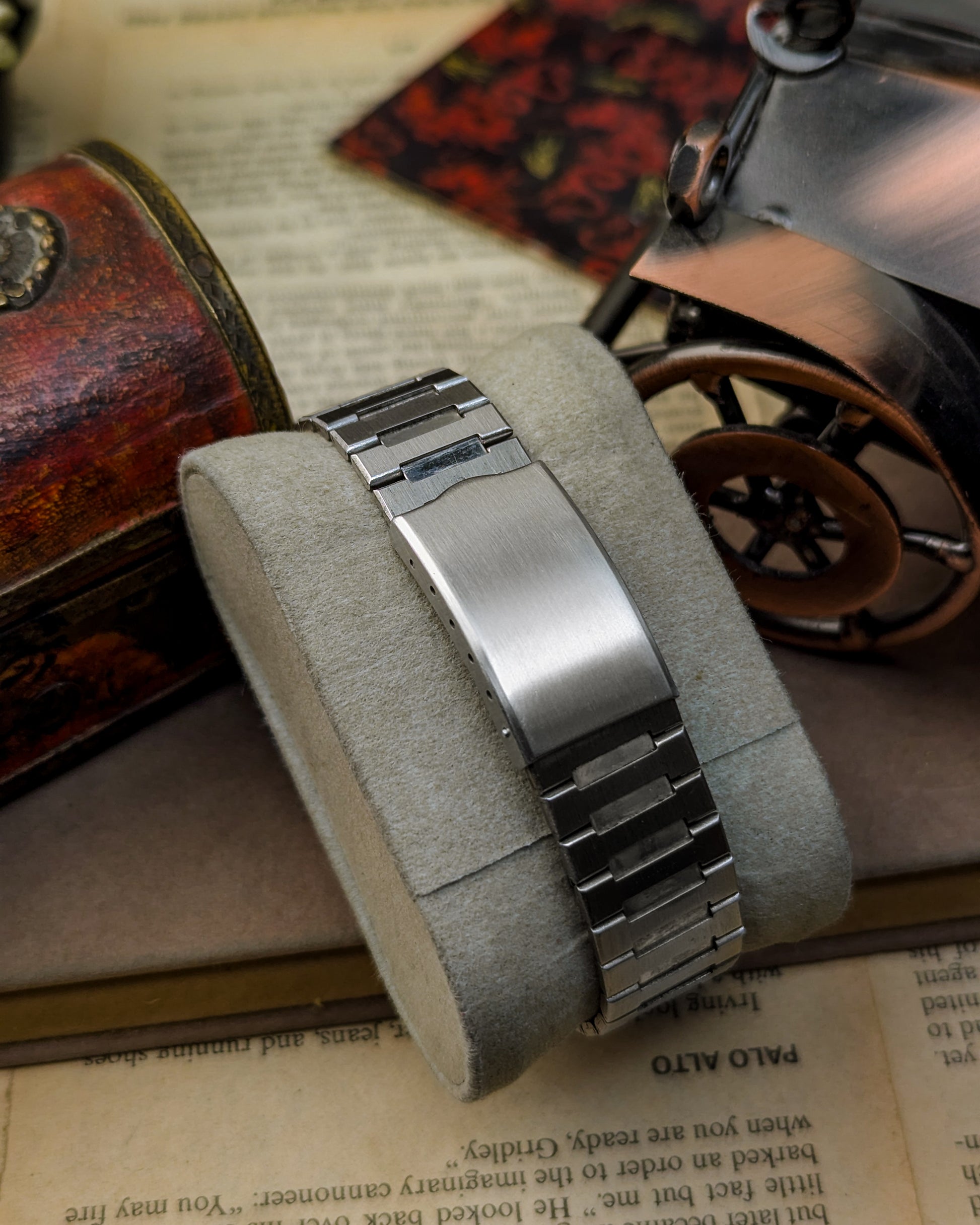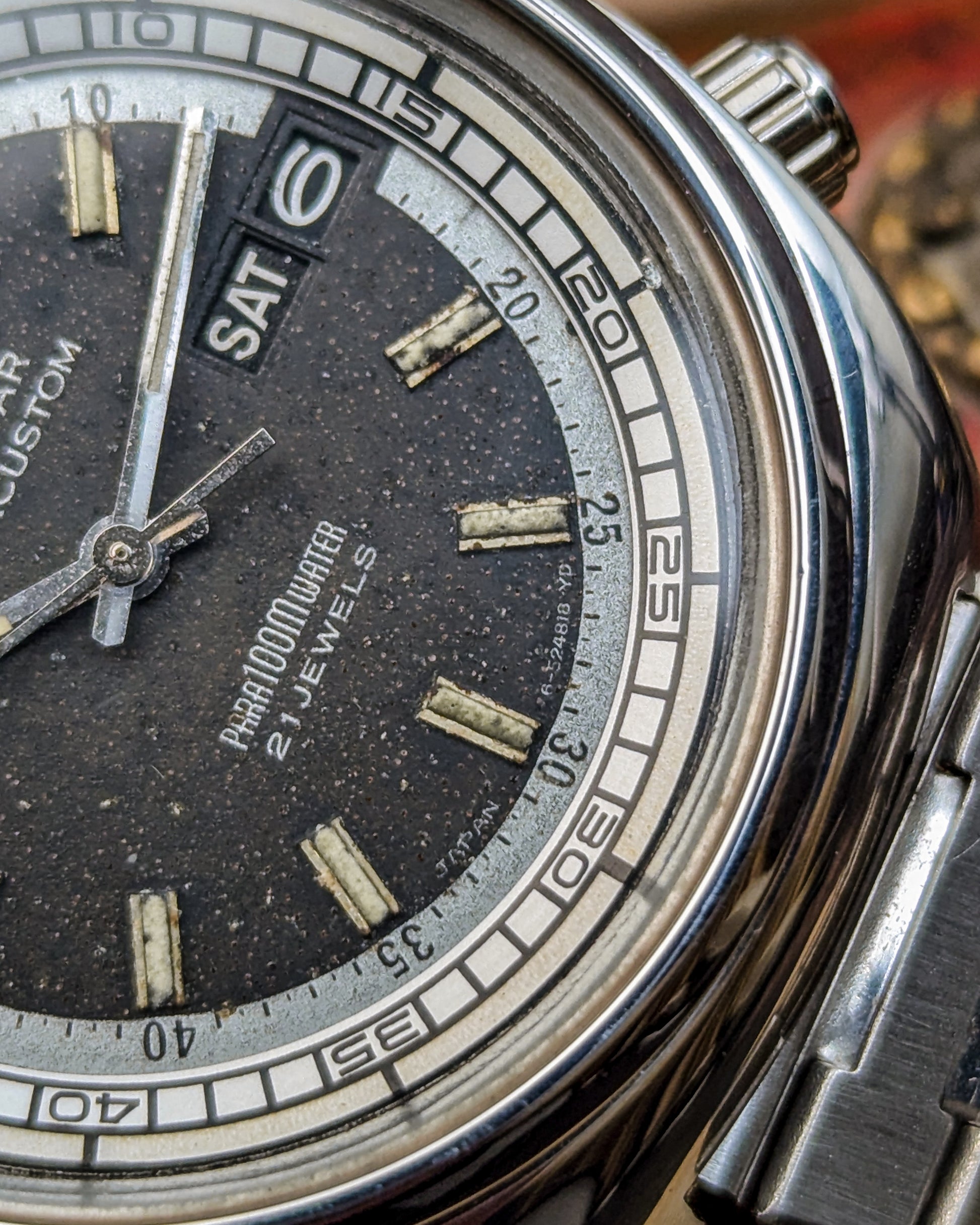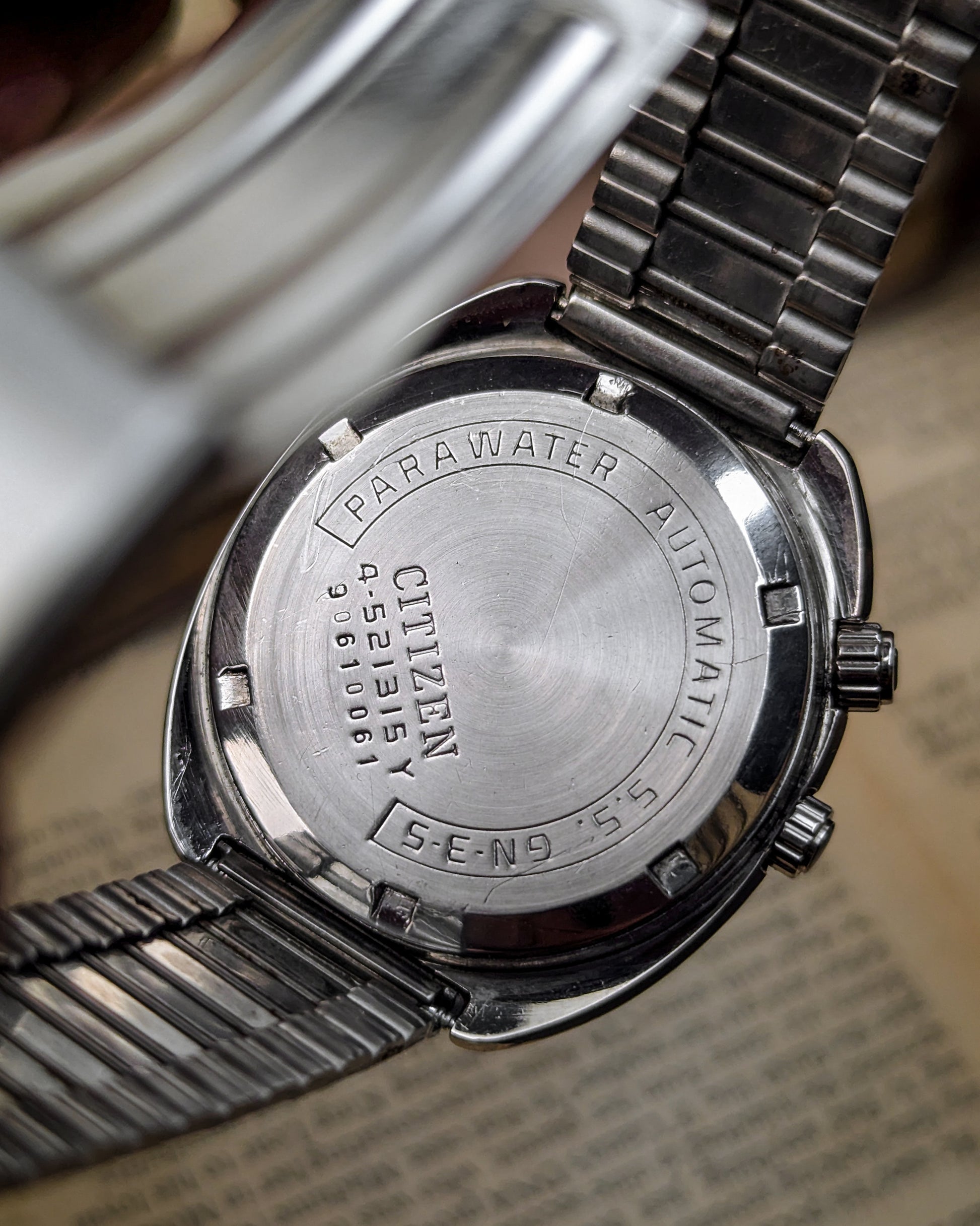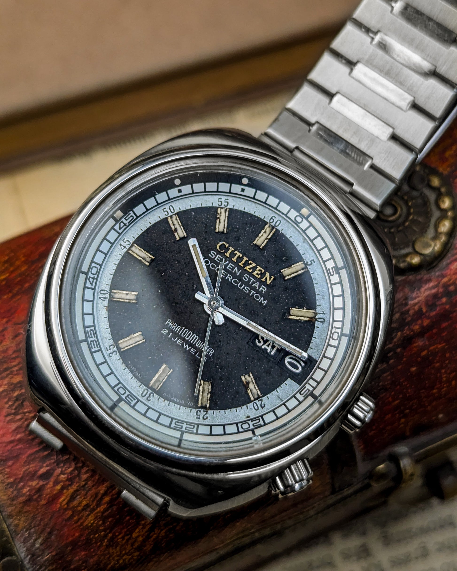 This timepiece is a fascinating blend of practical utility and unique 1970s JDM styling, marking Citizen's shift towards professional and sports watches! The Citizen Seven Star line was the brand's premium automatic offering in the late 1960s and early 1970s, showcasing robust construction with the screw-down "Parawater" caseback- Citizen's early designation for water resistance.