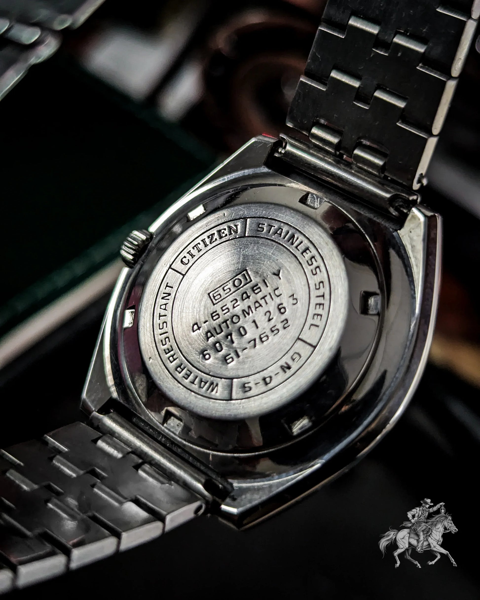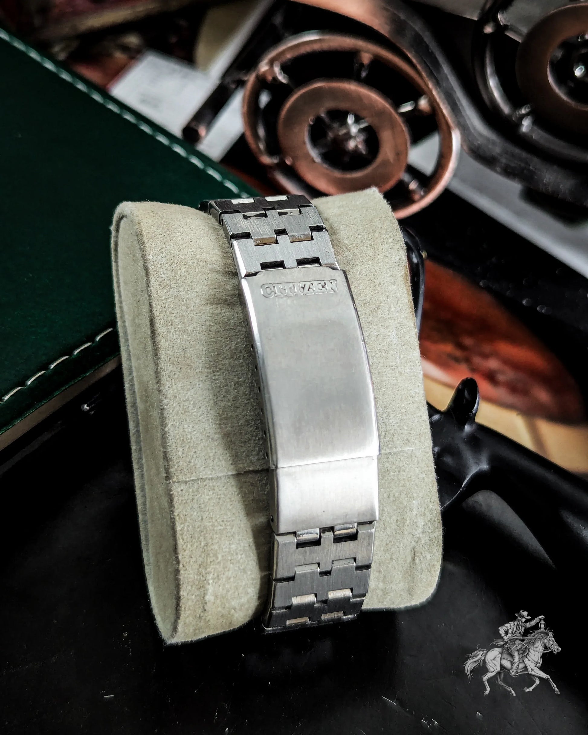 Citizen in this era produced incredibly high-quality, fully in-house movements, often rivaling Seiko's equivalent models, yet they remain wonderfully undervalued today. The angular, integrated stainless steel bracelet is a perfect match for the case geometry, completing that iconic 70s look. This watch is a rare find for those who appreciate unconventional dial artistry and the reliability of Japan's golden age of mechanical watchmaking. It's a statement of sophistication and fun that you can't find in modern pieces!