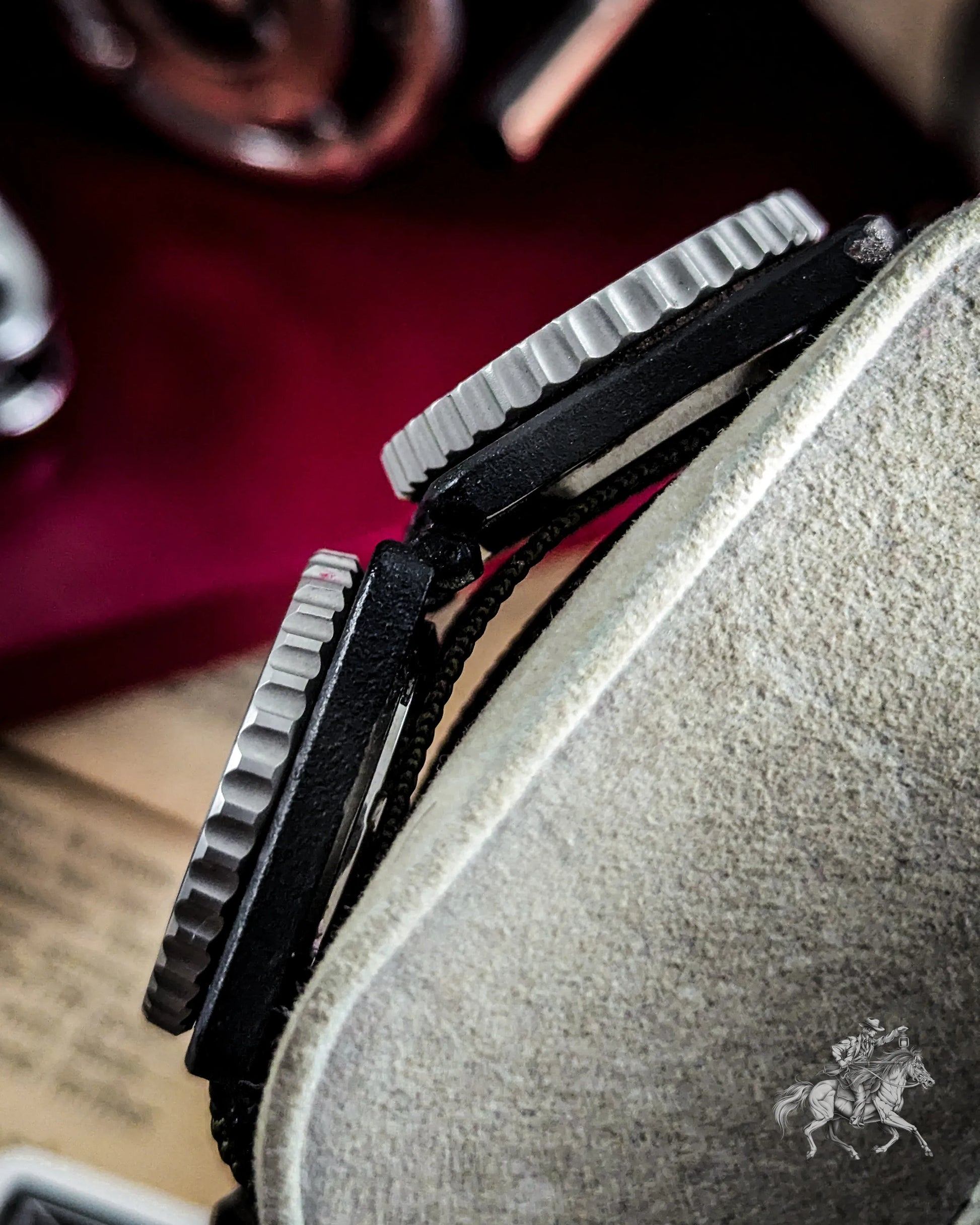The specific combination here is the most practical and appealing: the top module is the time-telling analog quartz display (likely featuring the Caliber 1421, known for its small size and reliability), while the bottom module is a fully functional magnetic compass with a rotating bezel. This makes it an instant piece of tactical gear. The watch’s robust, square, black-coated composite cases with the knurled rotating bezel and clear military-style dial are pure, uncompromised tool-watch design.