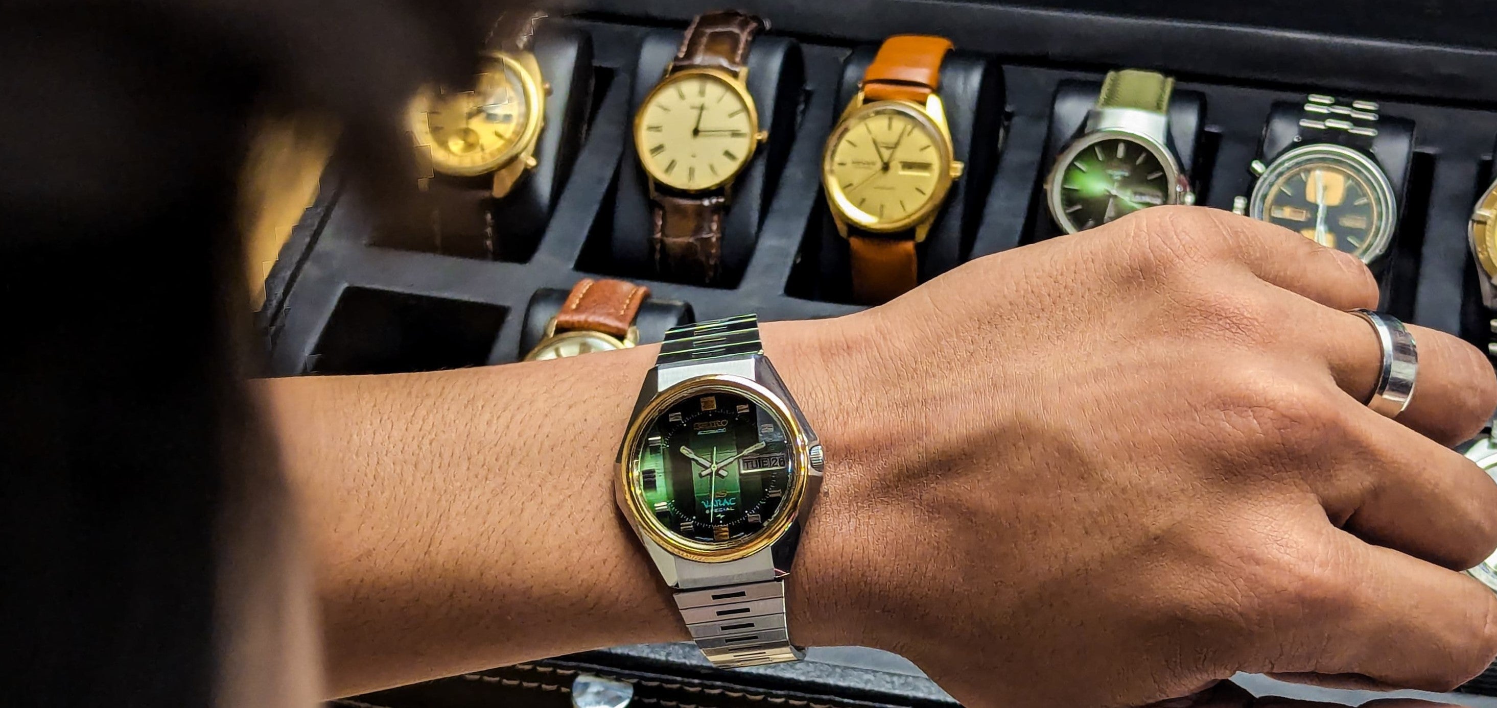 Vendor:Rare Morpho Butterfly Dial - Mesh Bracelet - 1973 JDMRegular price $6,725.00 AUDRegular priceUnit price / per$7,445.00 AUDSale price $6,725.00 AUDSale -
