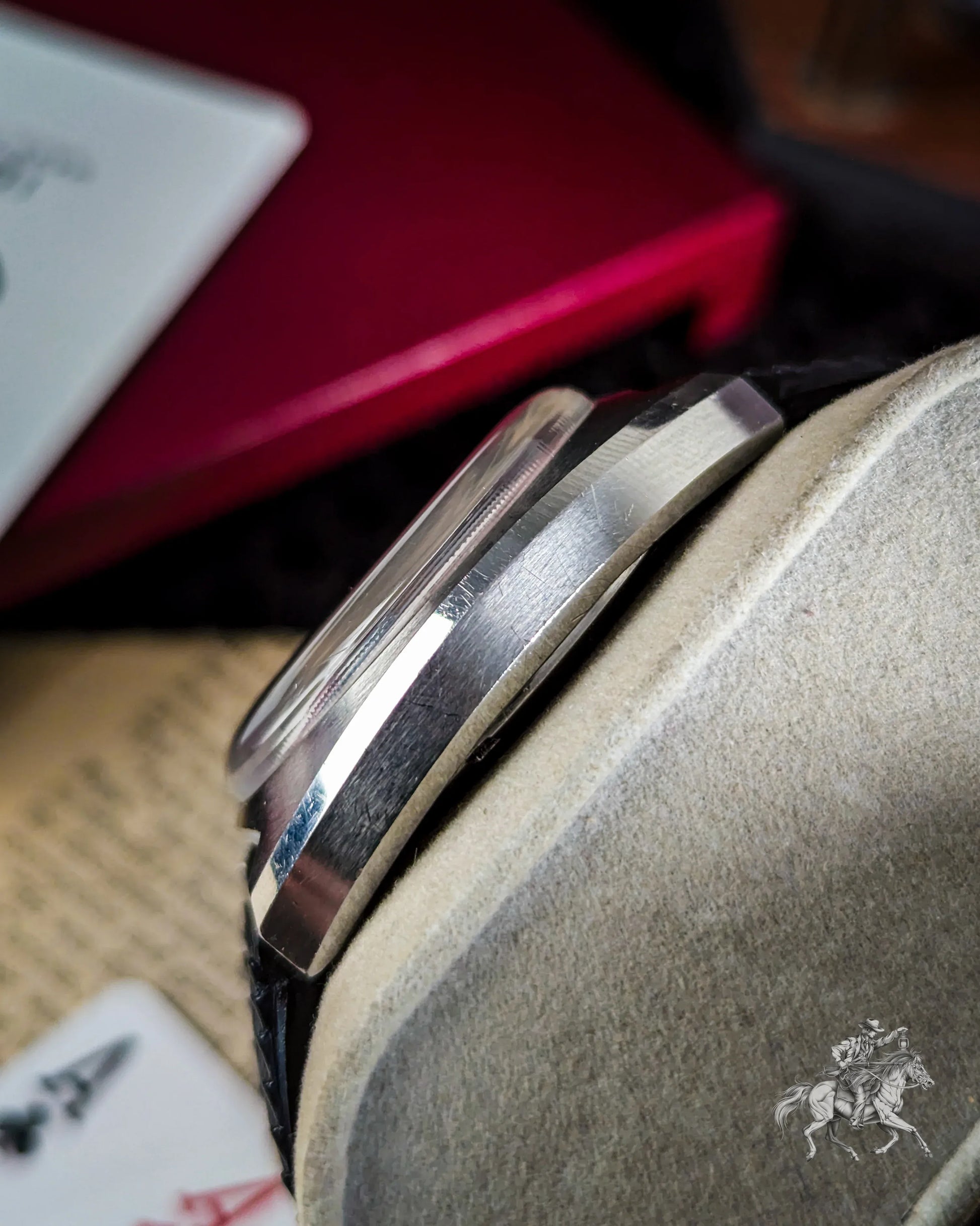 Powering the watch is the legendary Calibre 321 manual chronograph movement, Omega’s revered column-wheel movement also used in the early Speedmasters. This movement dates to 1966, making it an earlier production of this reference.