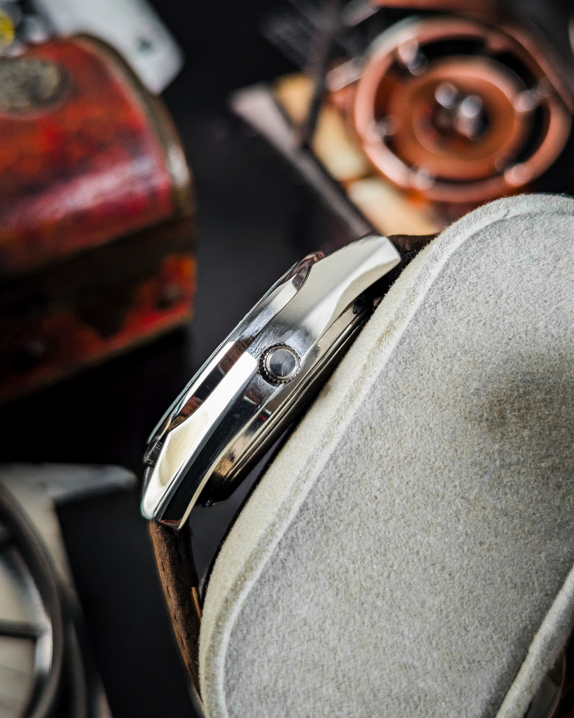 A luxurious stainless steel bracelet offers exceptional comfort and versatility. Its refined finish provides a striking contrast to the watch's design, making it an accessory that effortlessly complements various outfits and occasions with its timeless and elegant appeal.