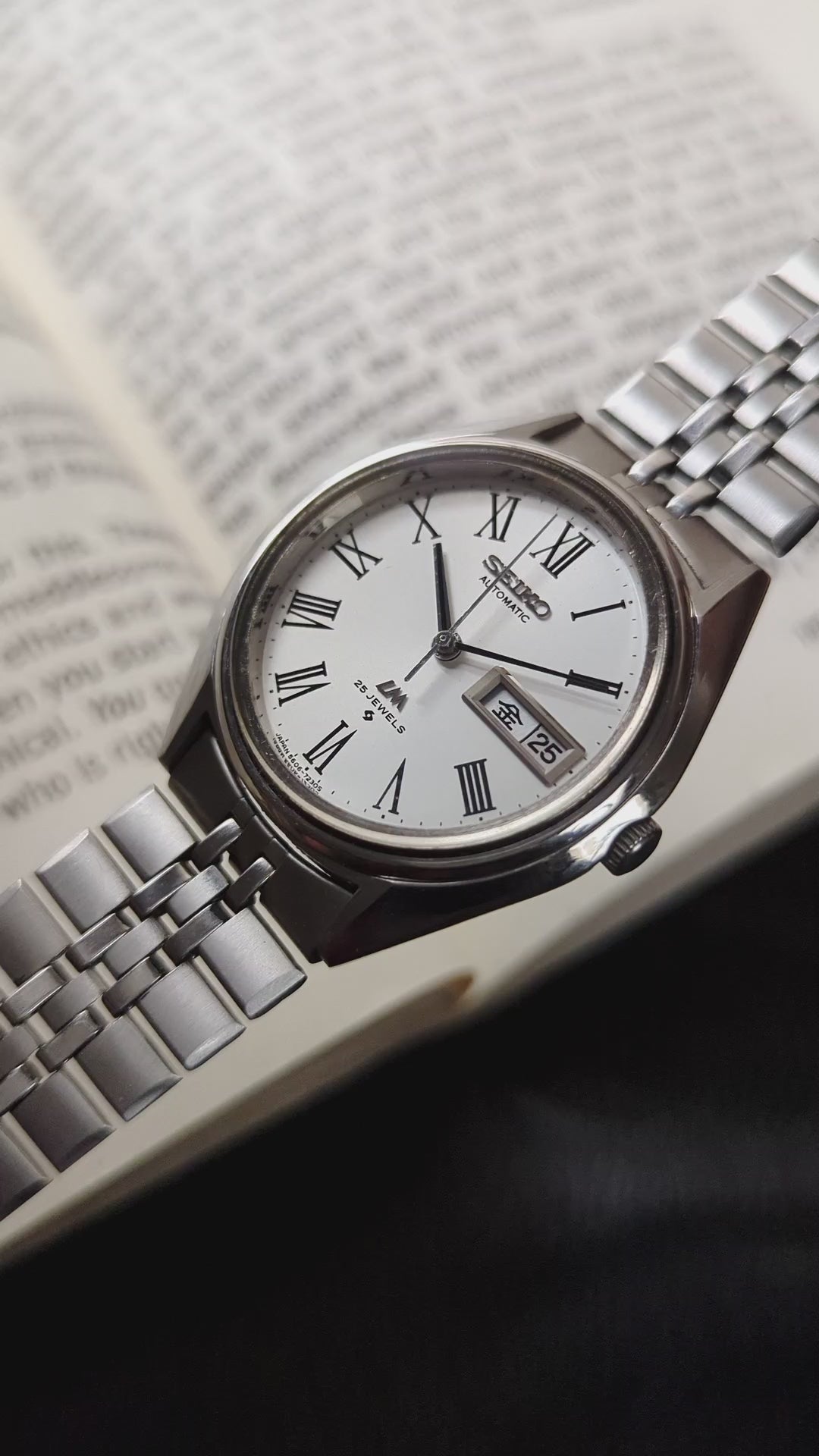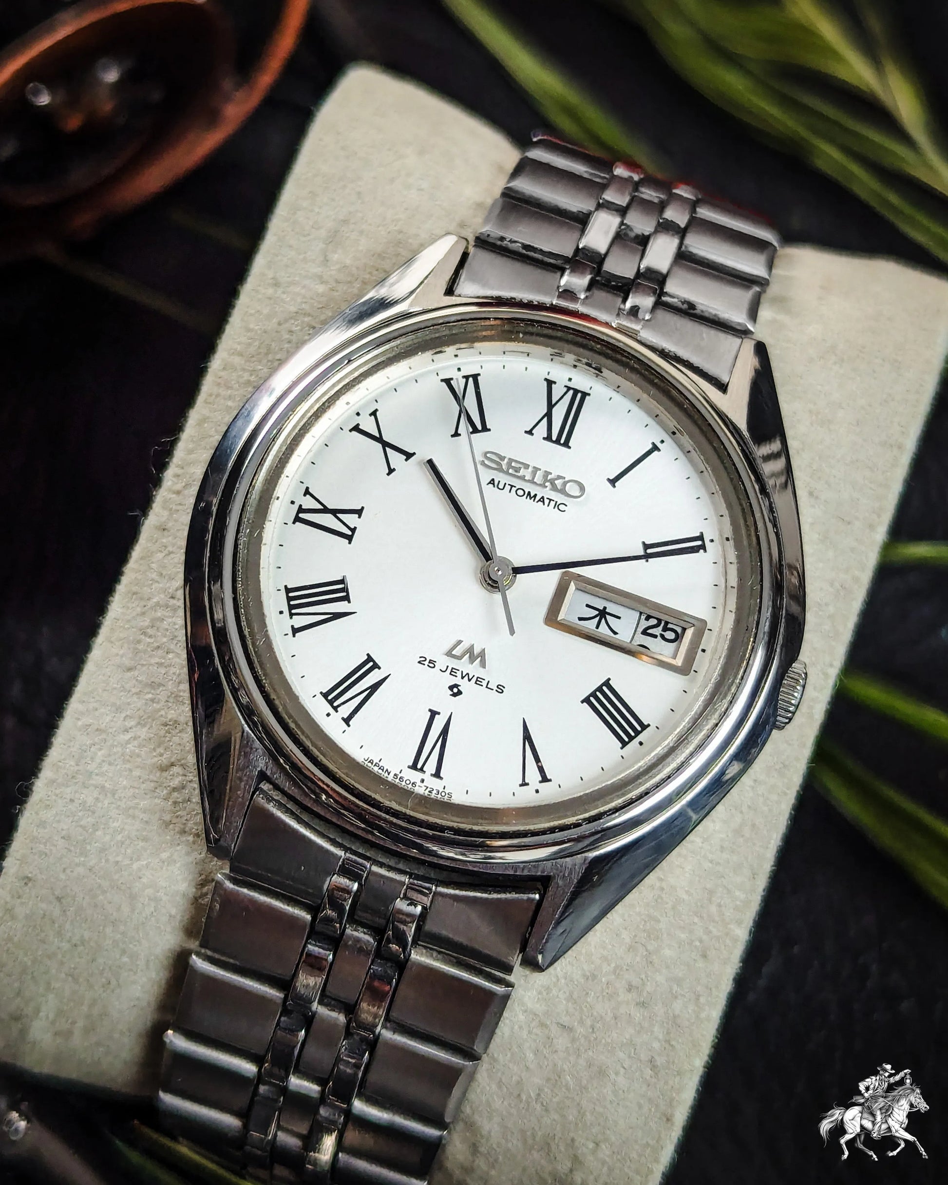 The Vintage Seiko Lord Matic Special 5606 - 7192 Automatic watch holds special significance as a rare collectible associated with Japan National Railways. Introduced during the 1970s, a period marked by Seiko's unwavering commitment to excellence and innovation in mechanical watchmaking, this model, the 5606 - 7192 , stands as a testament to Seiko's mastery of crafting high-quality mechanical timepieces. With its distinguished design, the Seiko Lord Matic is celebrated for its timeless elegance, featuring a White dial complemented by Roman Numerals that ensure a refined and easily readable time display.