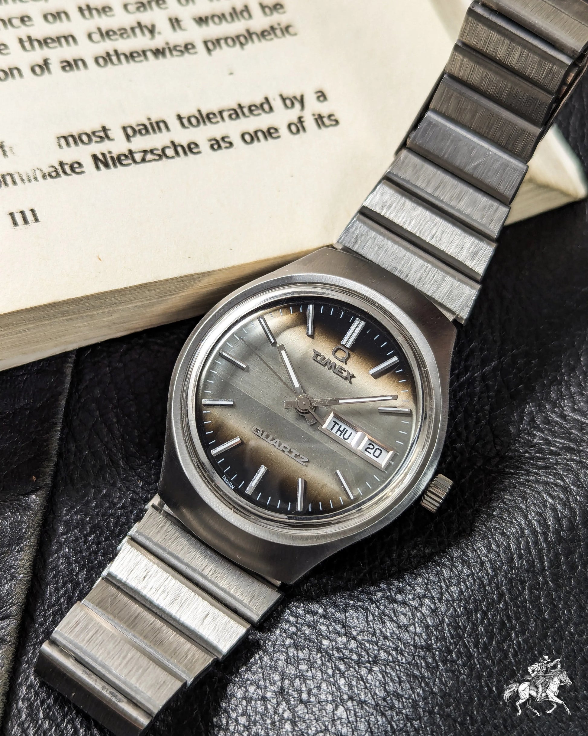 The Big Q Timex Quartz represents a pivotal moment in watchmaking history during the mid-1970s, when quartz technology was still in its exciting early stages. Released around 1976, this model showcases Timex’s achievement in making reliable quartz technology accessible to a broader market, at a time when quartz watches were seen as futuristic and highly desirable.
